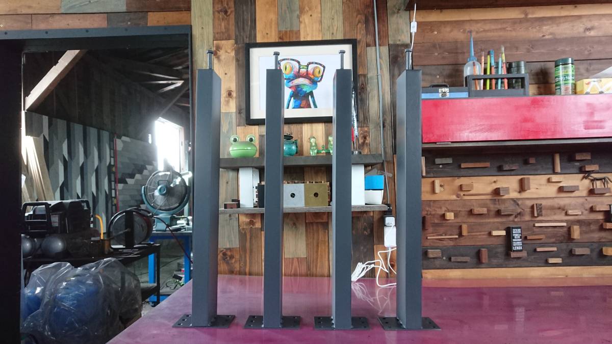 ハンドメイドの鉄脚4脚1組での出品です。6×38mmのフラットバーを使用しその上に1.2mm厚の鉄板を溶接しております。とてもスマートでスタイリッシュでありそうでなかったデザインだと思います♪