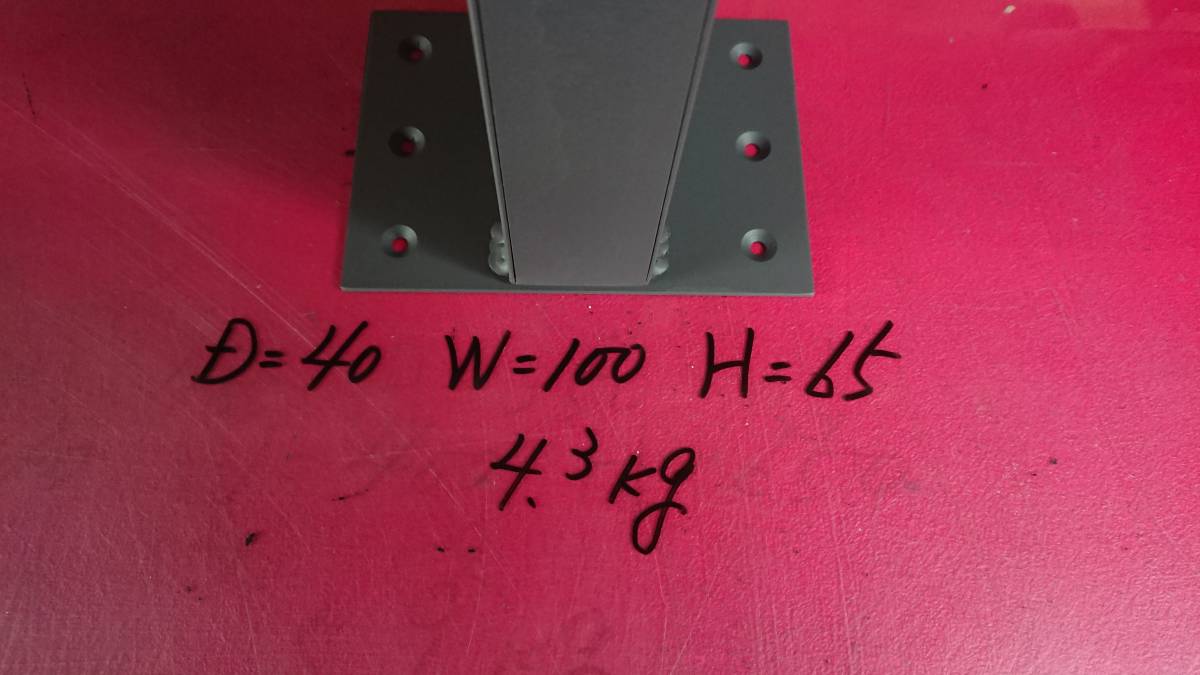 フレーム:約40mm × 100mm × 650mm( 幅 × 奥行 × 高さ ) ・ 天板受け:100mm × 140mm × 2.3mm ( 幅 × 奥行 × 厚み )