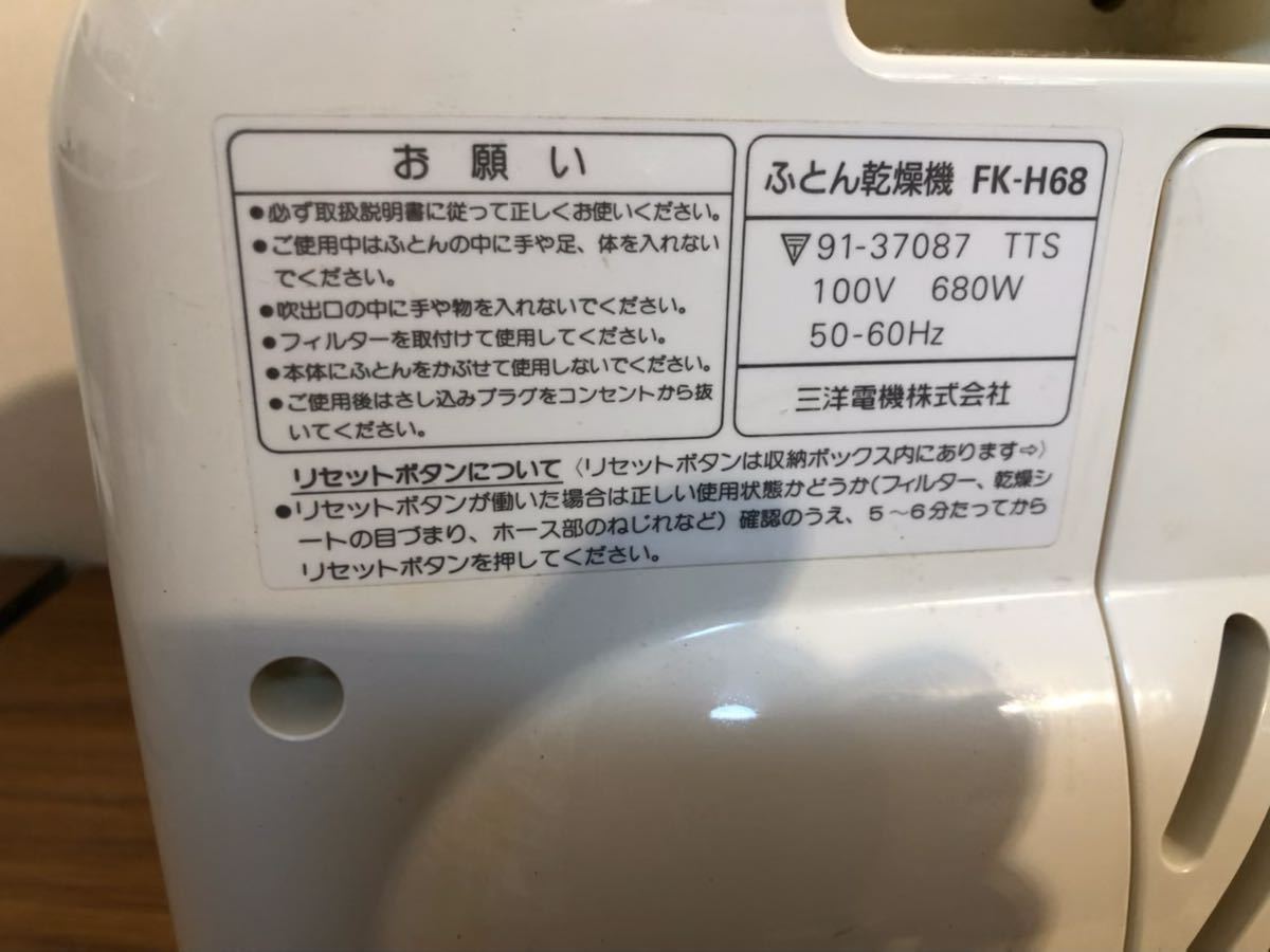 乾燥容量:ふとん2枚(敷布団、掛布団各1)