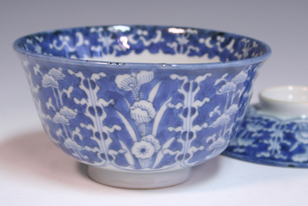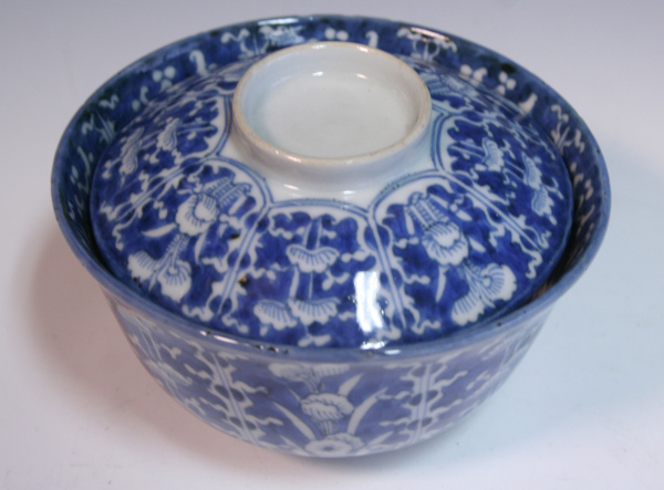 古伊万里、染付白抜花文蓋付飯茶碗です。時代は江戸時代。比較的状態は良いですが、古いものですので、汚れ、スレキズ、フリモノ、釉切れなどございます。状態の詳細は画像にてお確かめください。箱は付いておりません。お分かりの方、宜しくお願いいたします。