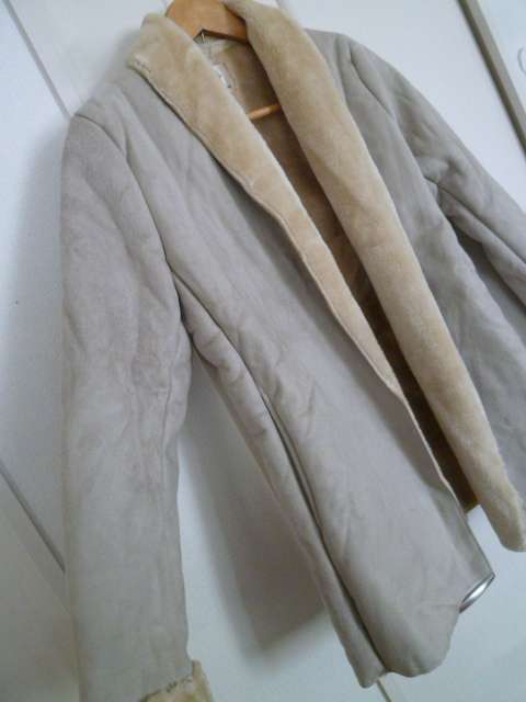 Bou jeloud/ブージュルード△ライトベージュムートン調裏ボアガウンコートジャケット38/スコットクラブ系列△CT1117