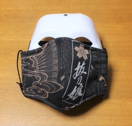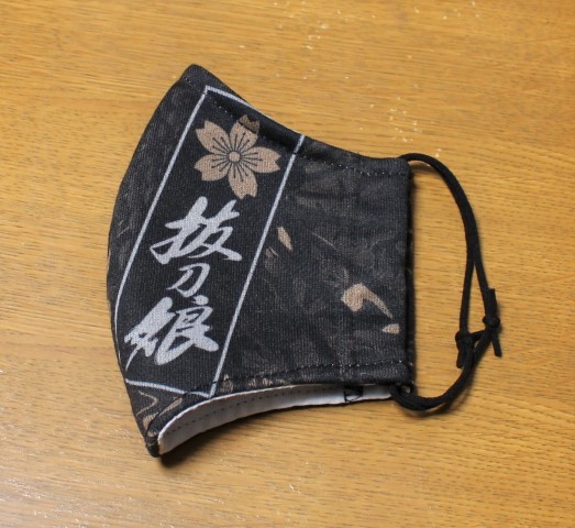 ハンドメイド立体マスクカバー♪(F)3抜刀娘字 共用 抗ウィルス.抗菌加工W ガーゼ