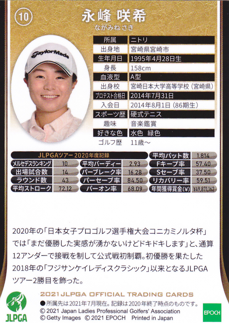 エポック 2021 JLPGA 10 永峰咲希 宮崎県宮崎市 宮崎日本大学高校
