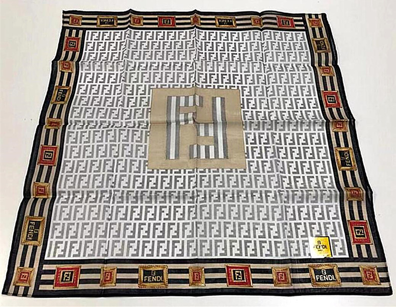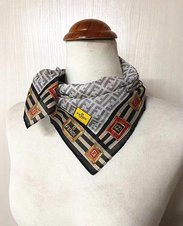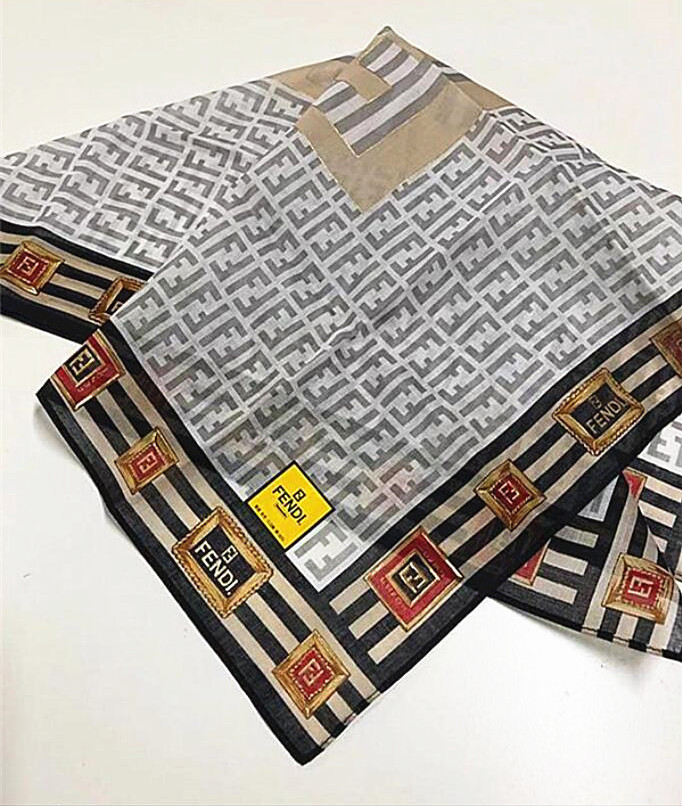 新品フェンディFENDI【レア柄】ズッカ柄大判ハンカチ★ミニスカーフ膝掛け