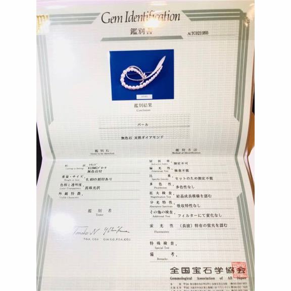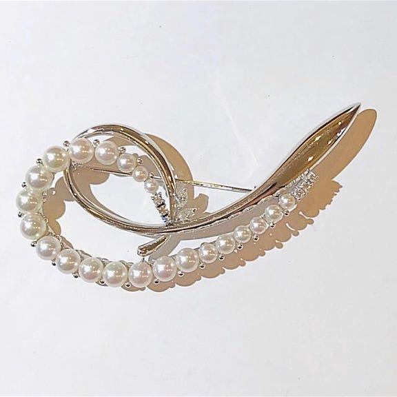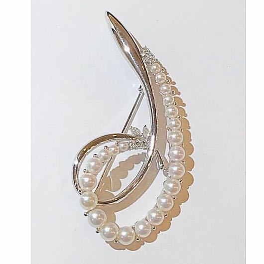 こちらは、K18WG台にパール22個、ダイヤ8石付きブローチです。