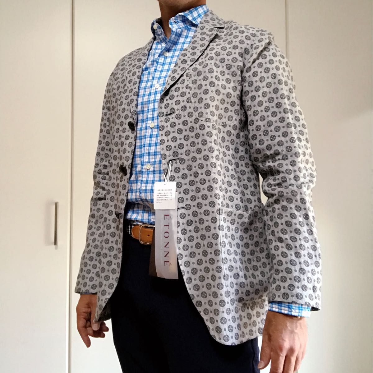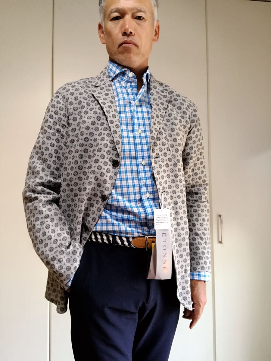 ユニバーサルランゲージのハウスブランド『ETONNE』からleomaster生地使用のリネンジャケットの出品です。