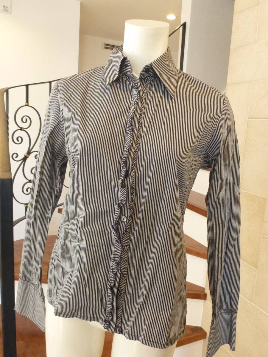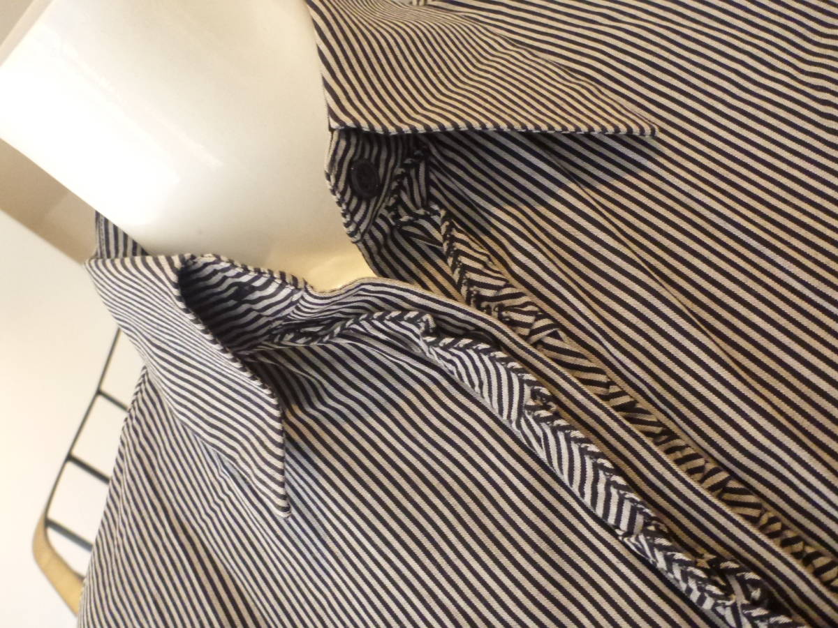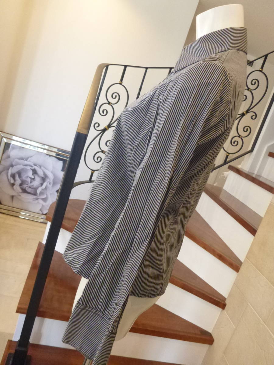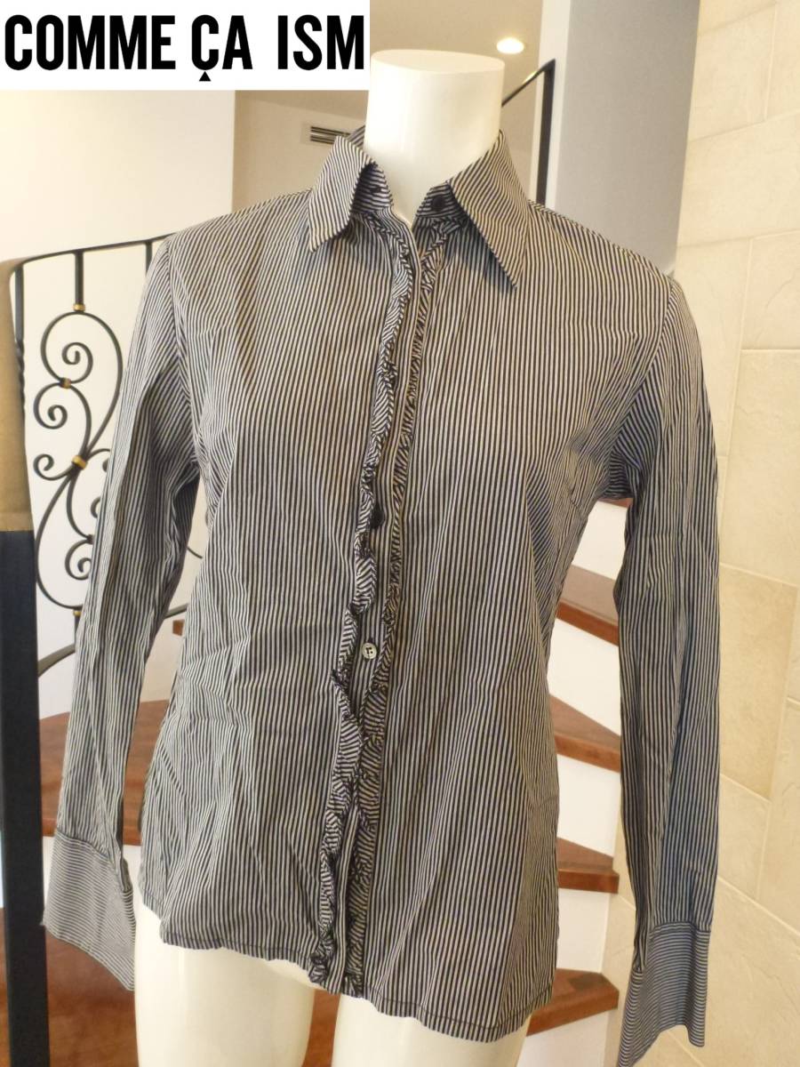 超美品 COMME CA ISM (コムサイズム) ★綿100 黒×グレー ストライプ柄 長袖 ブラウス シャツ 9 M