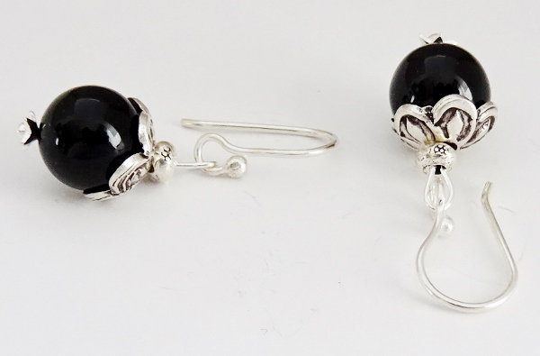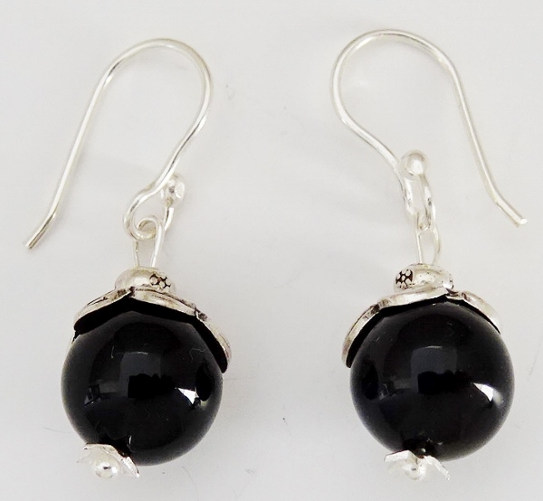 ◆カレンシルバー&天然石ピアス◆オニキス10mm玉◆17hp02<Onyxis・Onyx・黒めのう・黒瑪瑙> |