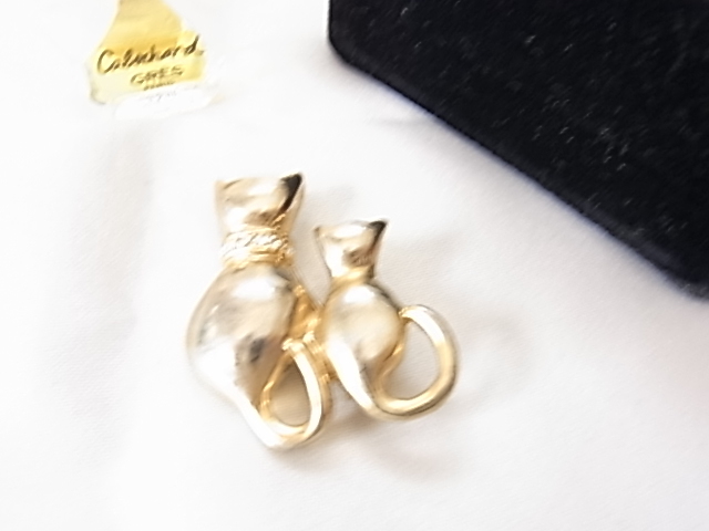 可愛い2匹のネコちゃん 猫 キャットモチーフ 首輪にラインストーンが煌めくビジュー ブローチ☆