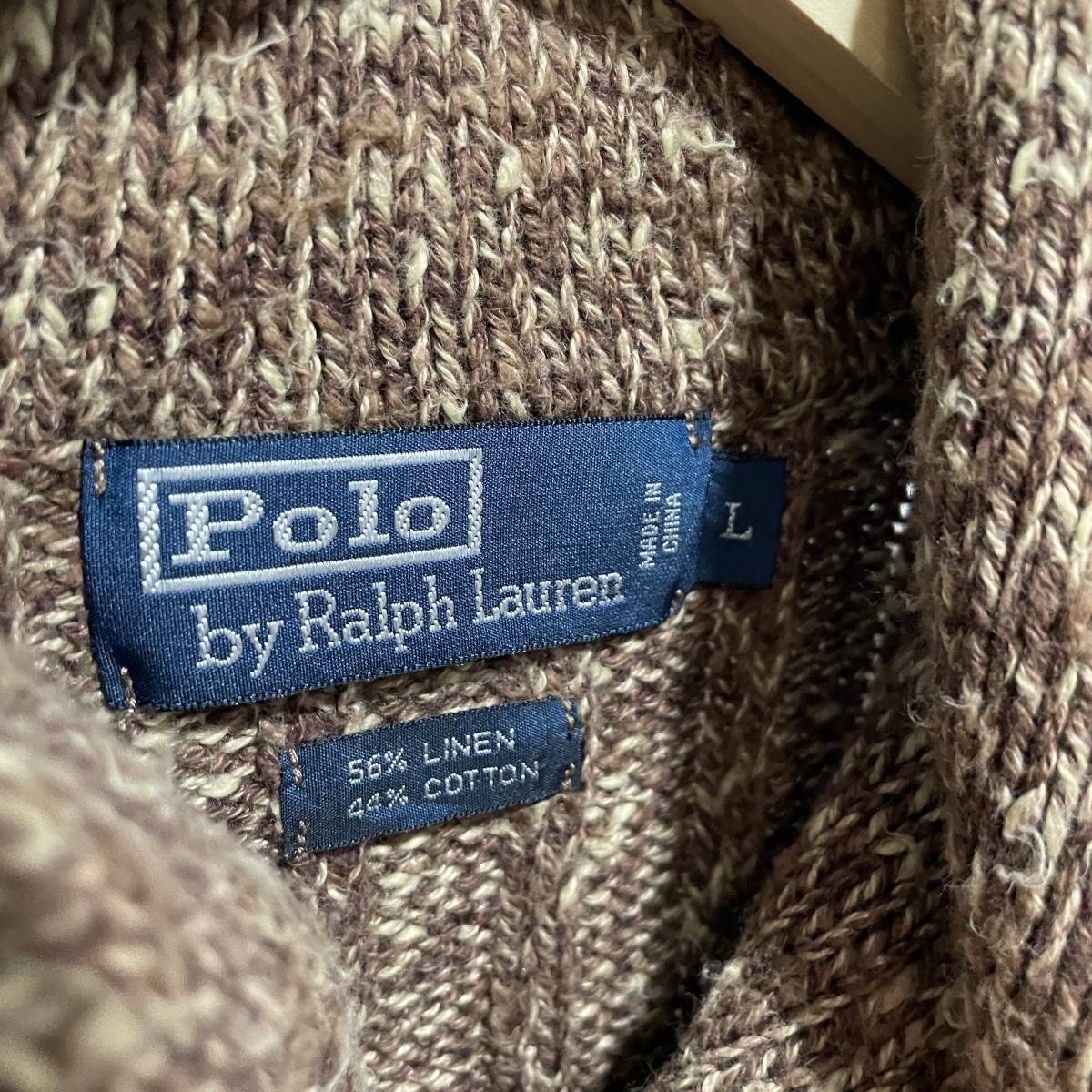 送料無料☆ラルフローレン☆ショールカラーミックスニットセーター☆リネンコットン☆メンズL☆z20c