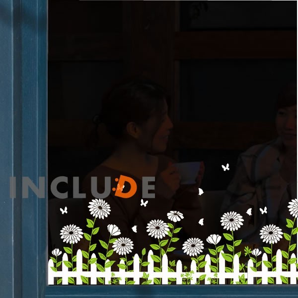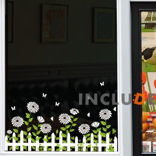 ウォールステッカー 白菊 マトリカリア 花鳥風月 ガラス 長谷川派 夏白菊 ナツシロギク ワイルドフィバーフュー マーガレット