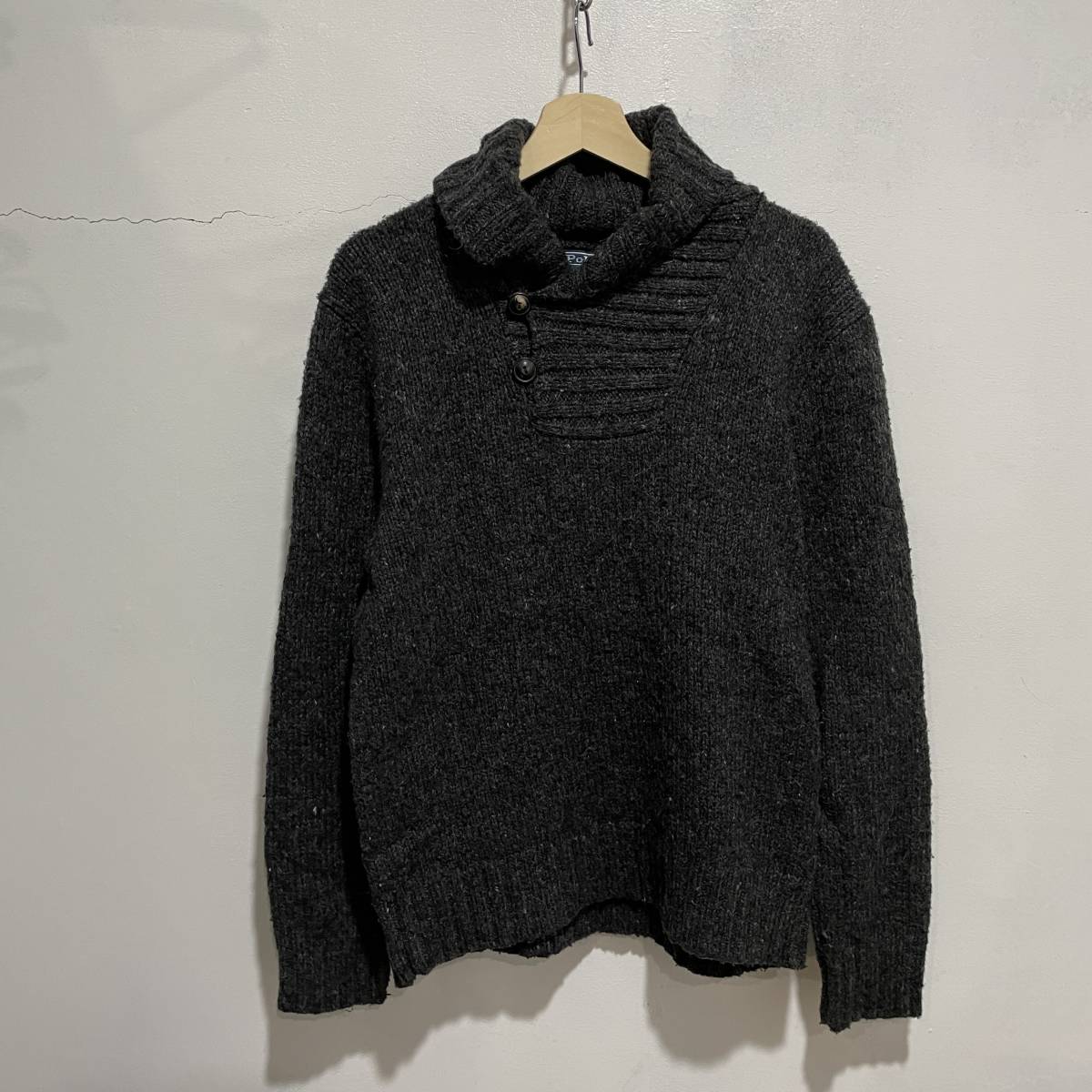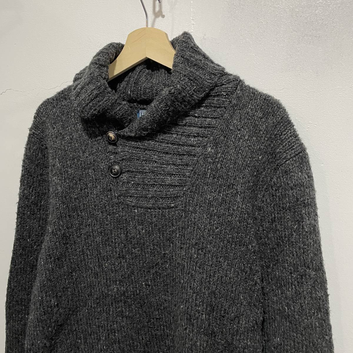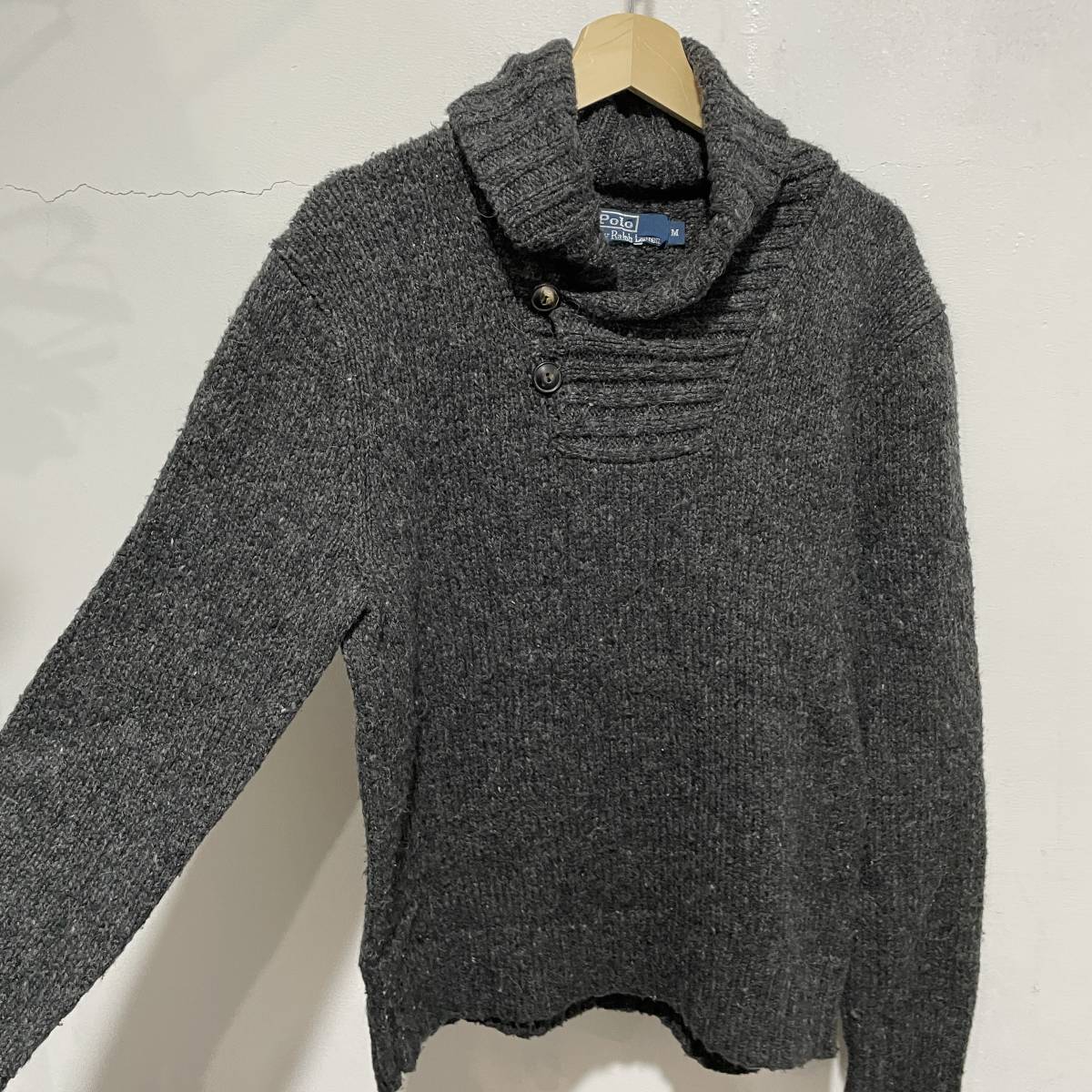 ☆送料無料☆POLO RALPH LAUREN☆ポロラルフローレン☆ショールカラーニットプルオーバー☆2つ釦☆アルパカ混☆チャコールグレー☆M☆C21c