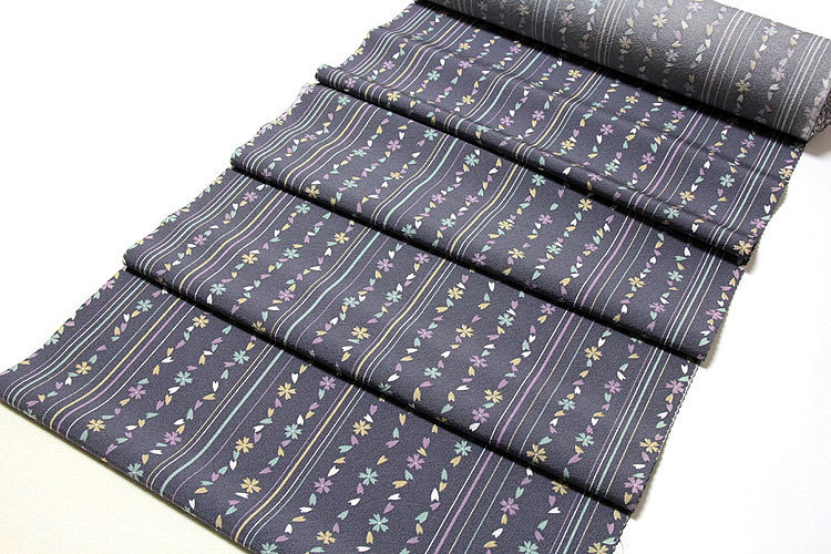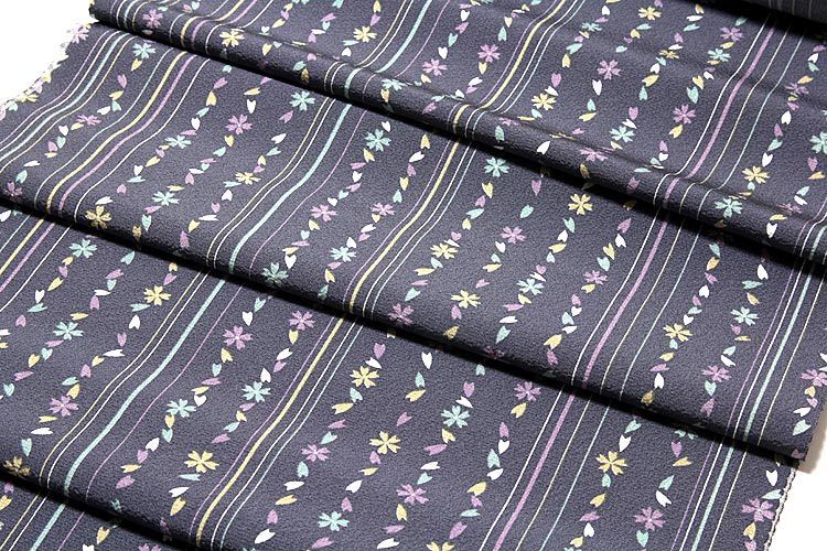 [和楽屋] ■桜小花 ボーダー 縞柄 花模様 丹後ちりめん 反物 正絹 小紋■