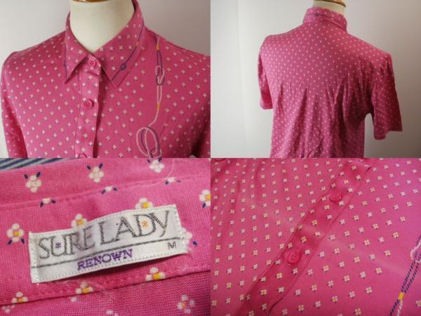 柄シャツ レディース 昭和レトロ レナウン ピンク 古着 ag112