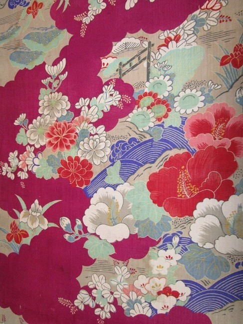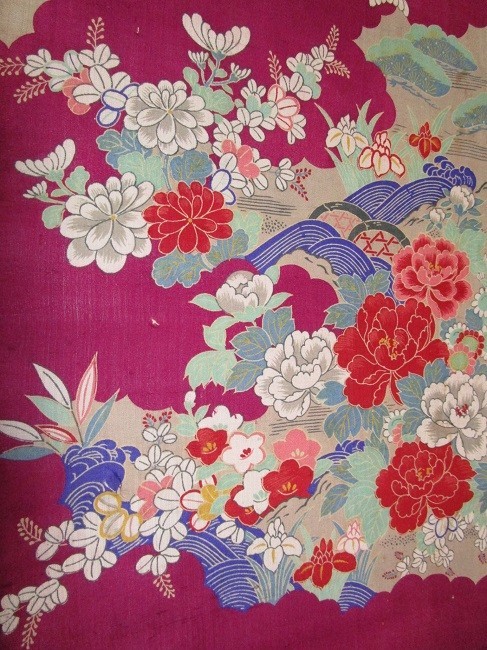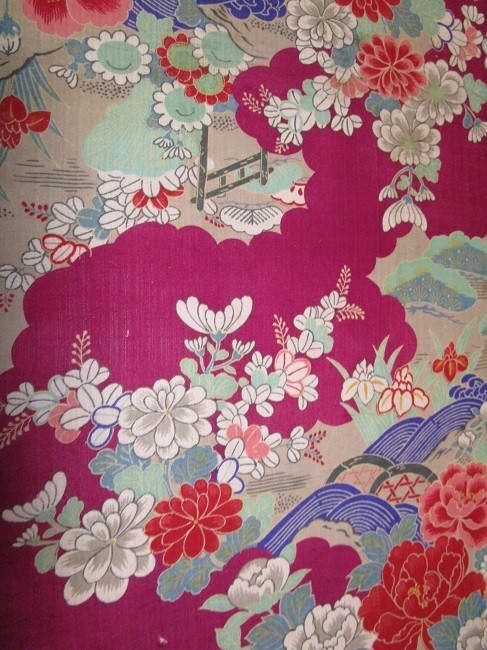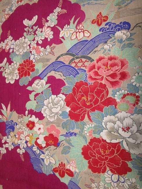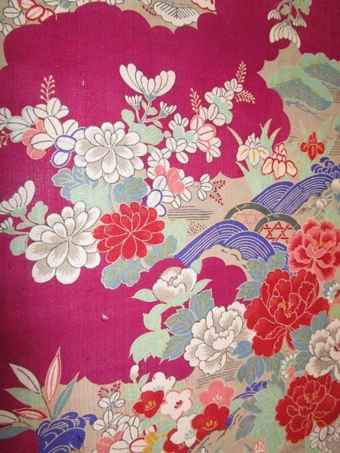 B-16★牡丹*菊*ハイビスカス*菖蒲*菊*梅*萩*交織*古布はぎれ★文化人形/一閑張り/吊るし雛/市松人形