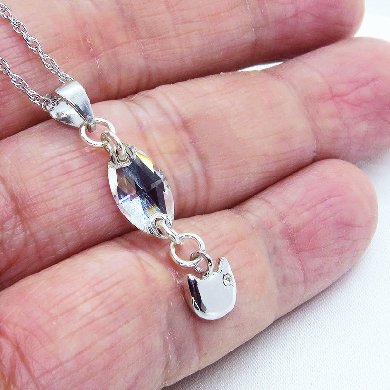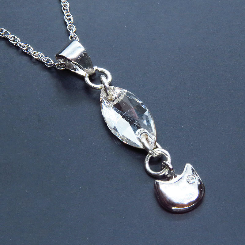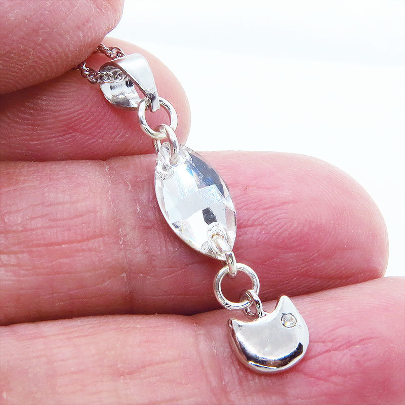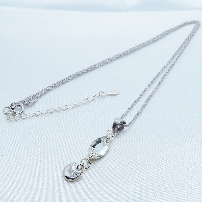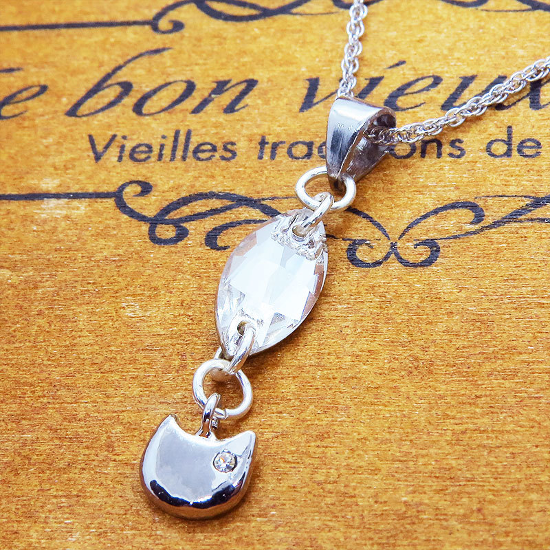 シルバー925 猫フェイスモチーフの大人可愛いネックレス スワロフスキー アジャスター
