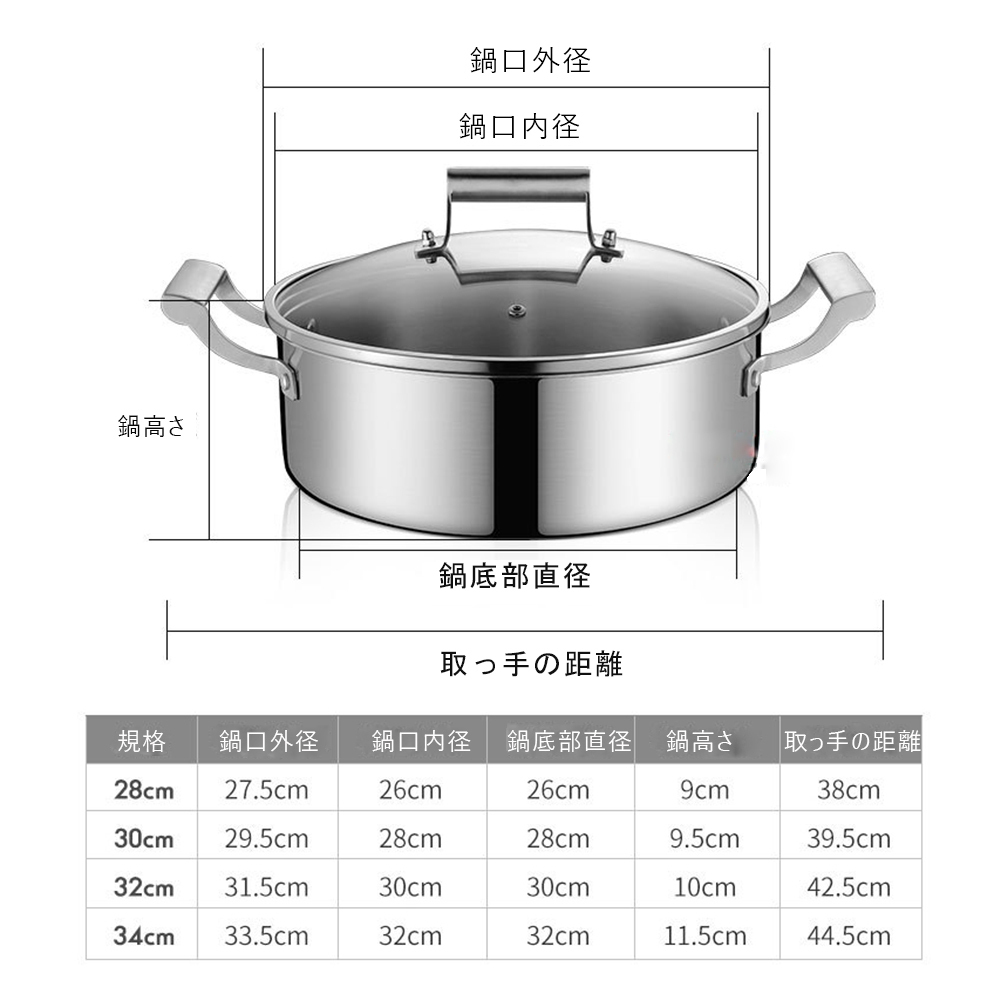 サイズ:32cm:鍋口外径:31.5cm 内径30cm 底部直径30cm 高さ10cm