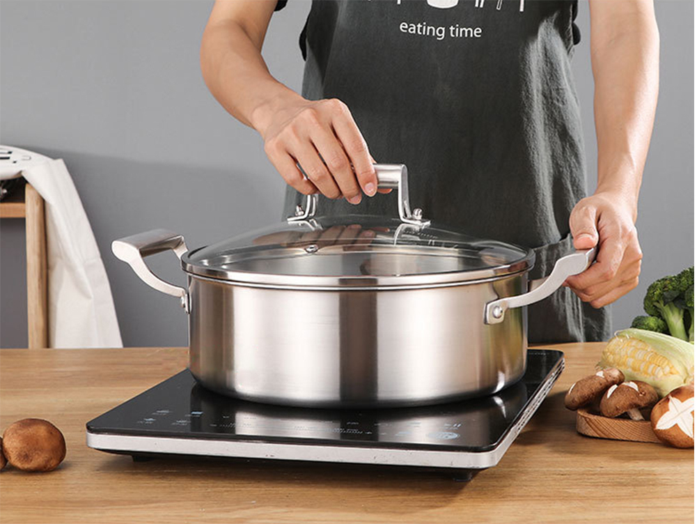 材質:ステンレス  蓋:強化ガラス(安全と健康の保障)