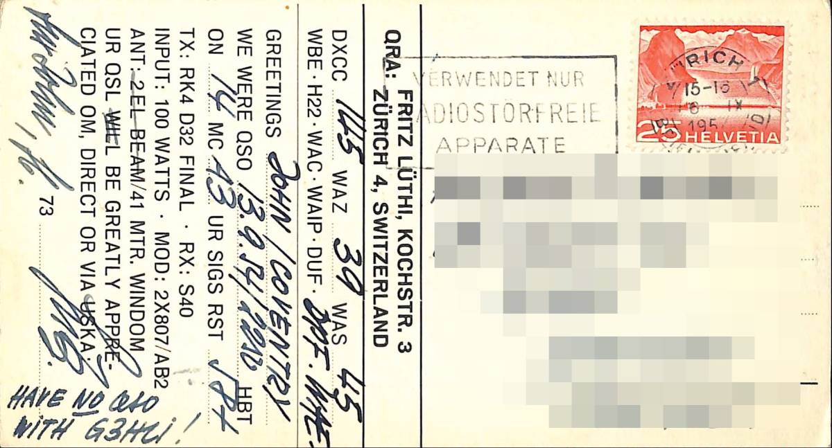 【商品名】・・・コールサインHB9GJ(★アマチュア無線局)のQSLカード。 【コメント】・・・スイスのアマチュア無線局のQSLカードです! 【国名・地名】・・・スイス★地方都市 チューリッヒ。 【受信データ】・・・1954年9月13日・SWを受信。 【記載事項】・・・受信データ・受信者の住所・氏名が記載。 【状態】・・・シワ、汚れ、シミ、焼け、、色あせ等があります。 ■カードの状態は★画像を参考に判断して下さい。 ■この機会にぜひこのQSLカードを貴方のBCLコレクションに加えて下さい! 【おまけ】・・・SONY・サービスガイド(PDF版)1機種を無料で添付します。 ★ICF-6800のカラーサービスガイド+追加版1+追加版2。 ★サービスガイドは、回路図(★カラー)・プリント基板図(★カラー)・分解・調整方法等が記載。 ★CD-Rに焼いてベリカードと一緒に同封致します。 ★PDFにパスワードを掛けておりPCで閲覧は可能ですがプリンターで印刷はできません! | |
