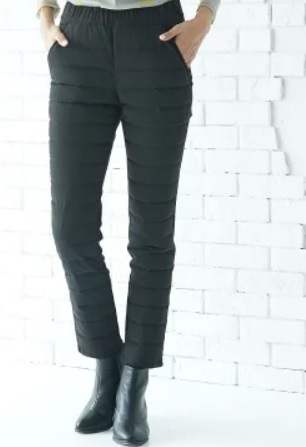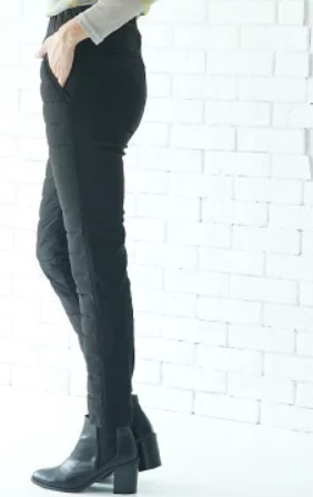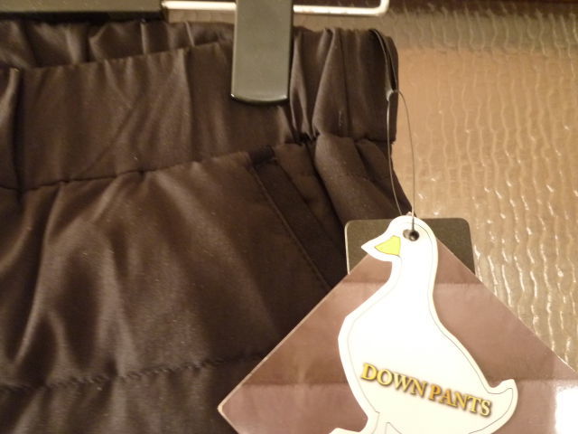 即決新品タグ付暖パンM黒ダウンパンツレディース美脚ウエストゴム細身10分丈防寒楽天ブラック未使用品シャカパン女性アウトドアキャンプ