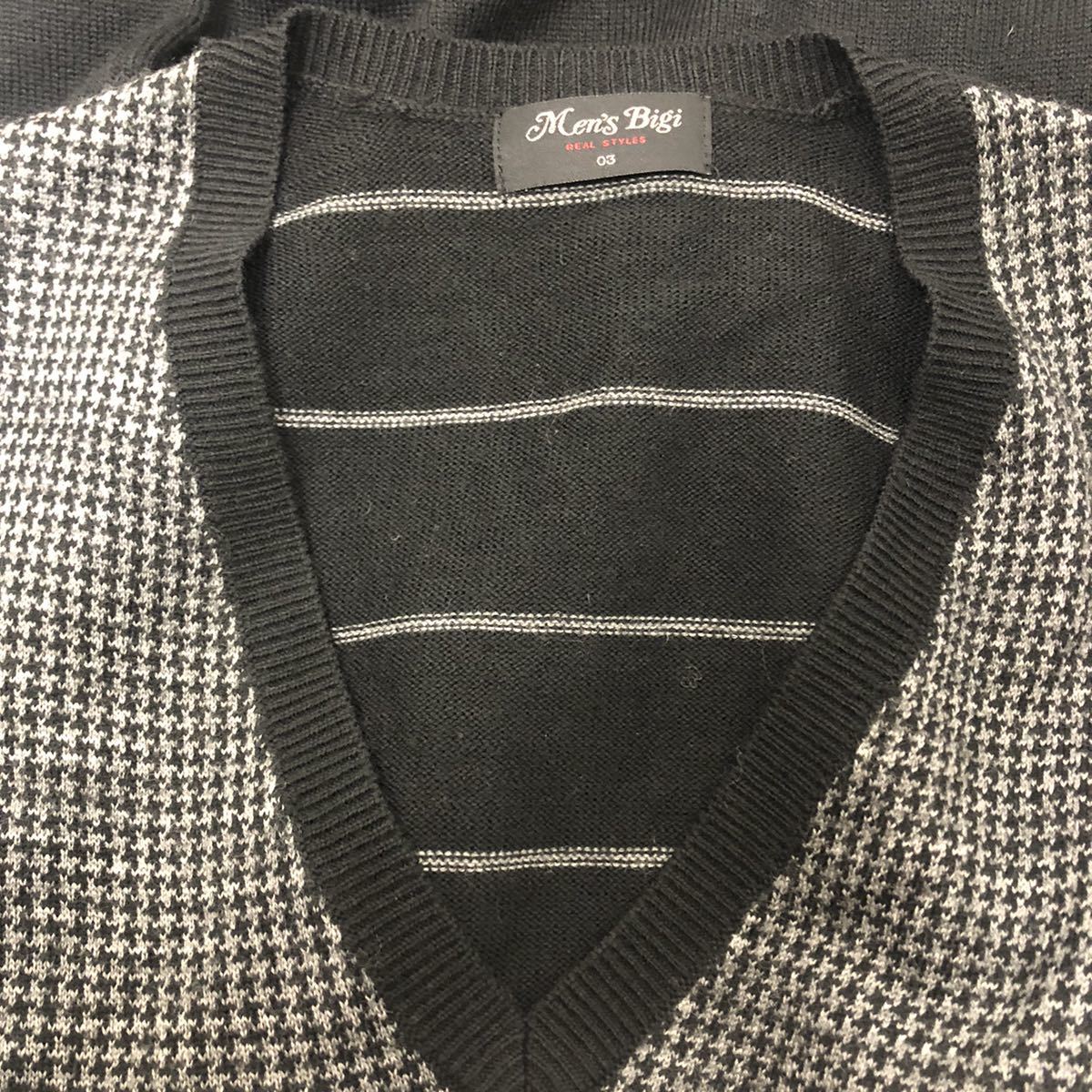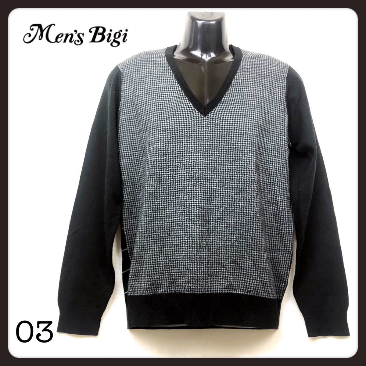 即決★men's BIGI★メンズビギ★メンズ★Vネックセーター★ギンガム★03★Mサイズ相当★ウォームビズ★トップス★お洒落★重ね着★