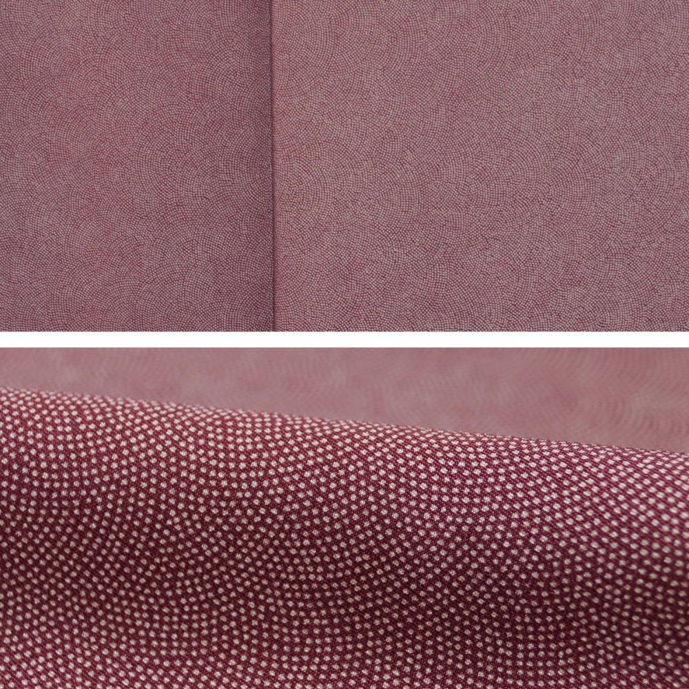 商品説明 | 中紅色の地に鮫青海波文様が染め抜かれた江戸小紋です。 ※衿・袖口に少し着用汚れがあります。上前から八掛、下前までに続くシミがあります。 |