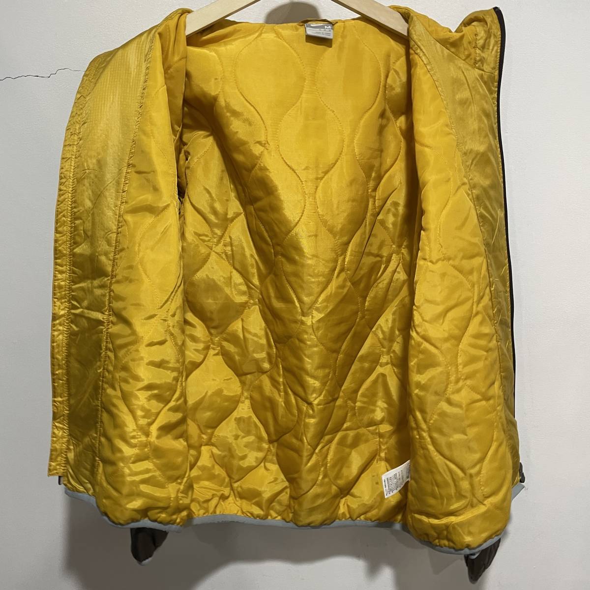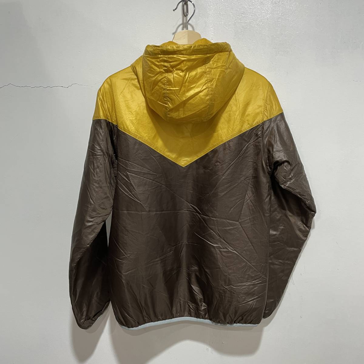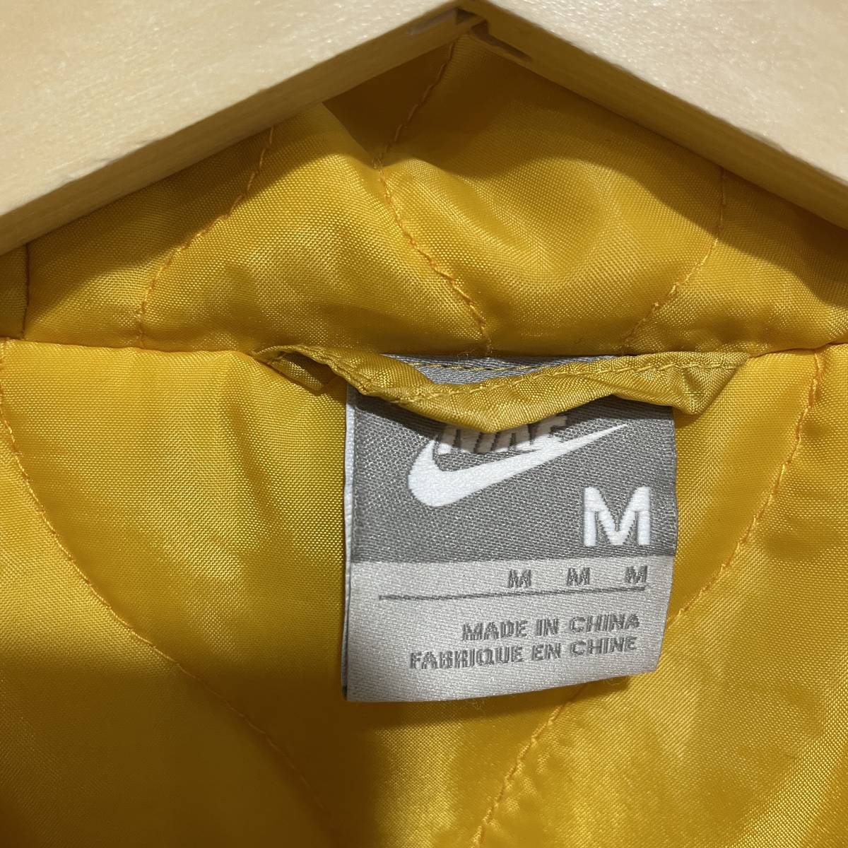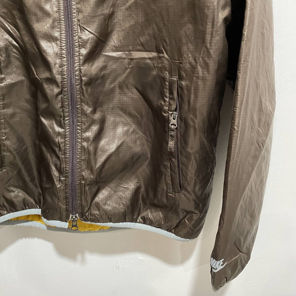 ☆送料無料☆NIKE☆ナイキ☆中綿フードジャケット☆配色切替☆スポーツ☆リップストップ☆Mサイズ☆黄色×茶色☆D21c