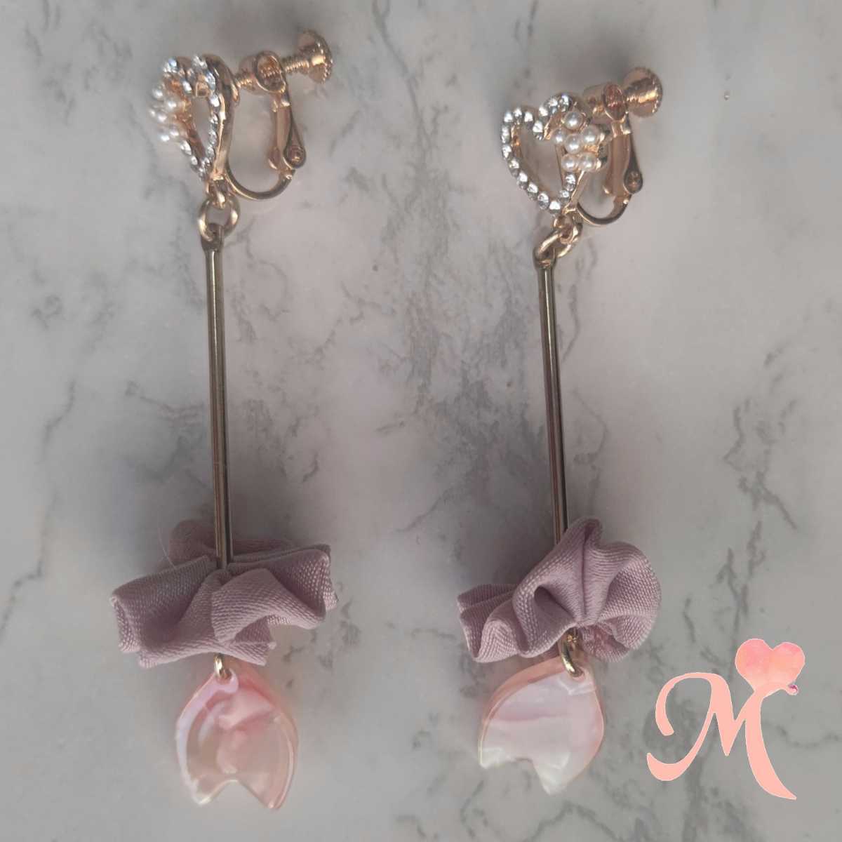 ハンドメイド イヤリング or ピアス ハート ニッケルフリー 変退色防止加工済み アレルギー対応 桜の花びら
