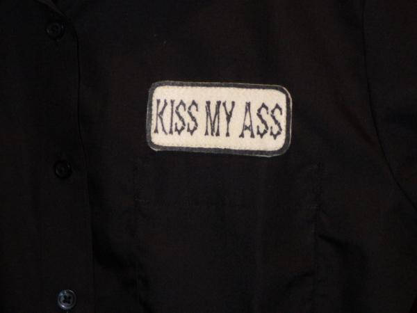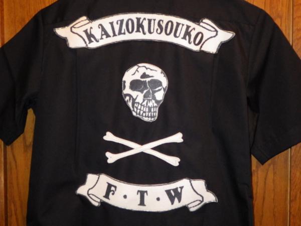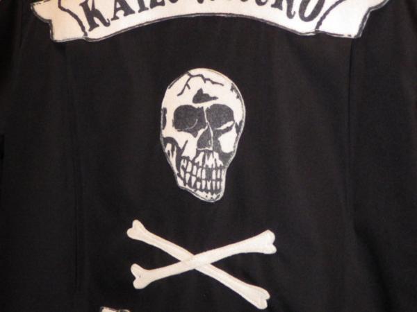 フロントのKISS MY ASS、バックの1900'Sスカル(100年以上前のアンティーク秘密結社のガウンのフェルトワッペンのリプロ)がとてもCOOLです♪