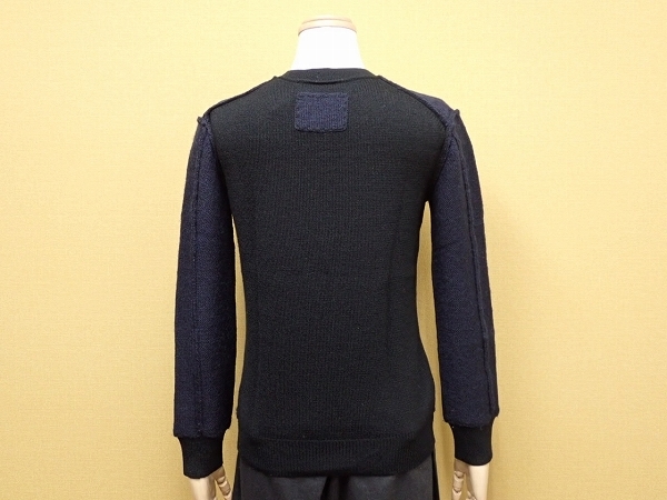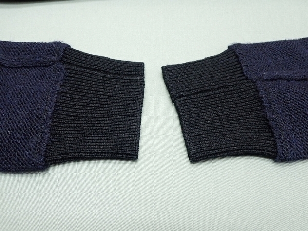 | 色 紺×黒 素材 ウール50% アクリル40% アルパカ10% 後身頃・リブ ウール50% アクリル50% | |