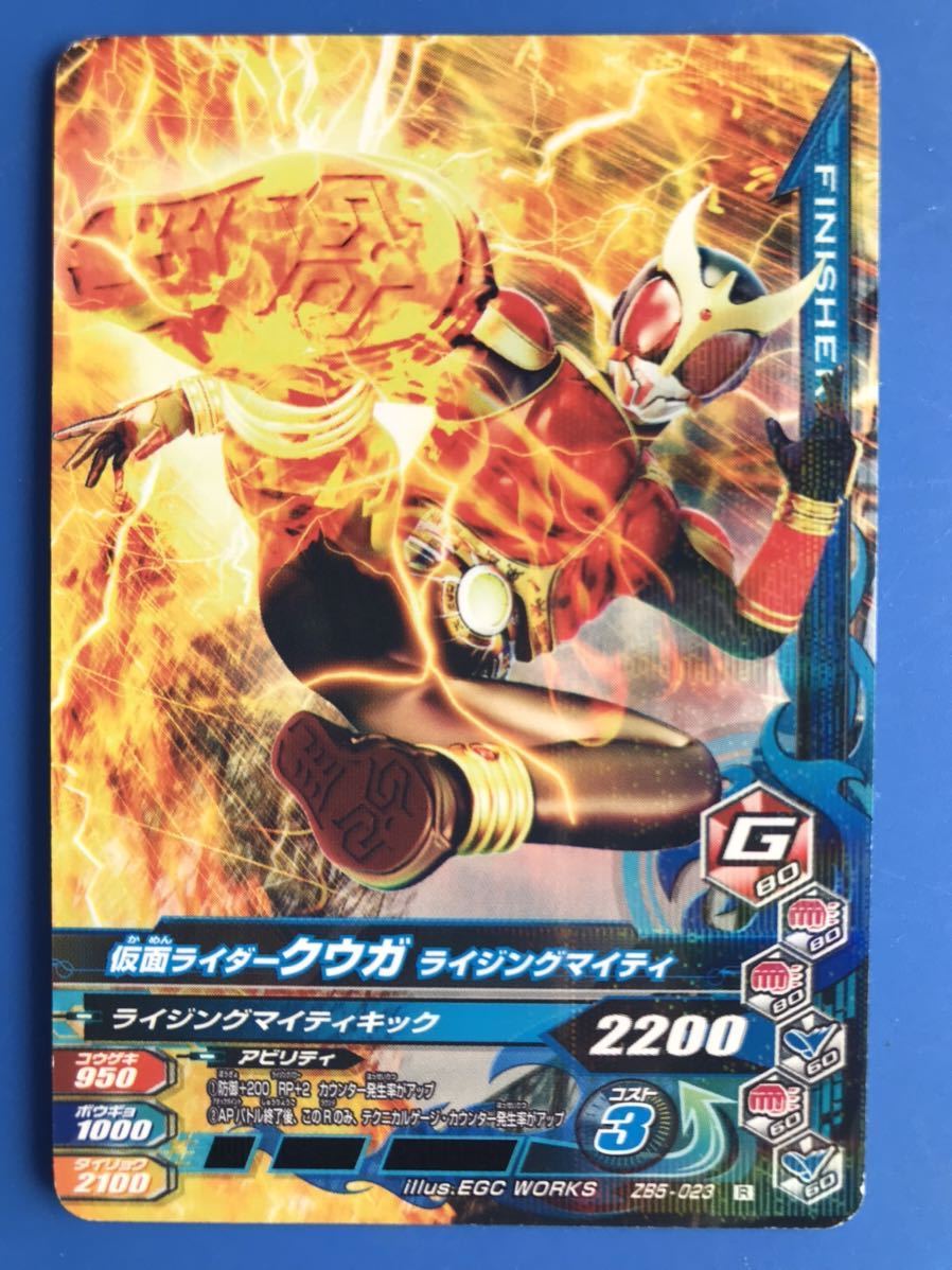 仮面ライダー、ガンバライジング・第ZB5弾からNo.023《仮面ライダークウガ・ライジングマイティ》の登場です。発送は、普通郵便を利用します。(特にご希望のない場合)おとりまとめも可能ですが、送料に変動する場合がございます。また、送料のご請求は、自宅での計量を基準にご請求させていただいておりますので、実際の金額と差異が出る場合もございます。予めご了承ください。他にも多数出品中です。まとめてこの機会にいかがでしょうか?ご質問お待ちしております。