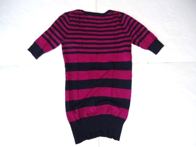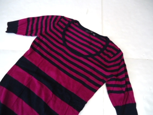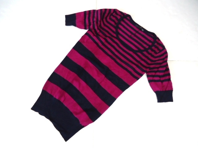 【KCM】wa-140★未使用品★【22 OCTOBRE/22 オクトーブル】レディース ボーダー 半袖ニット サイズ 44 ワインレッド系×ネイビー