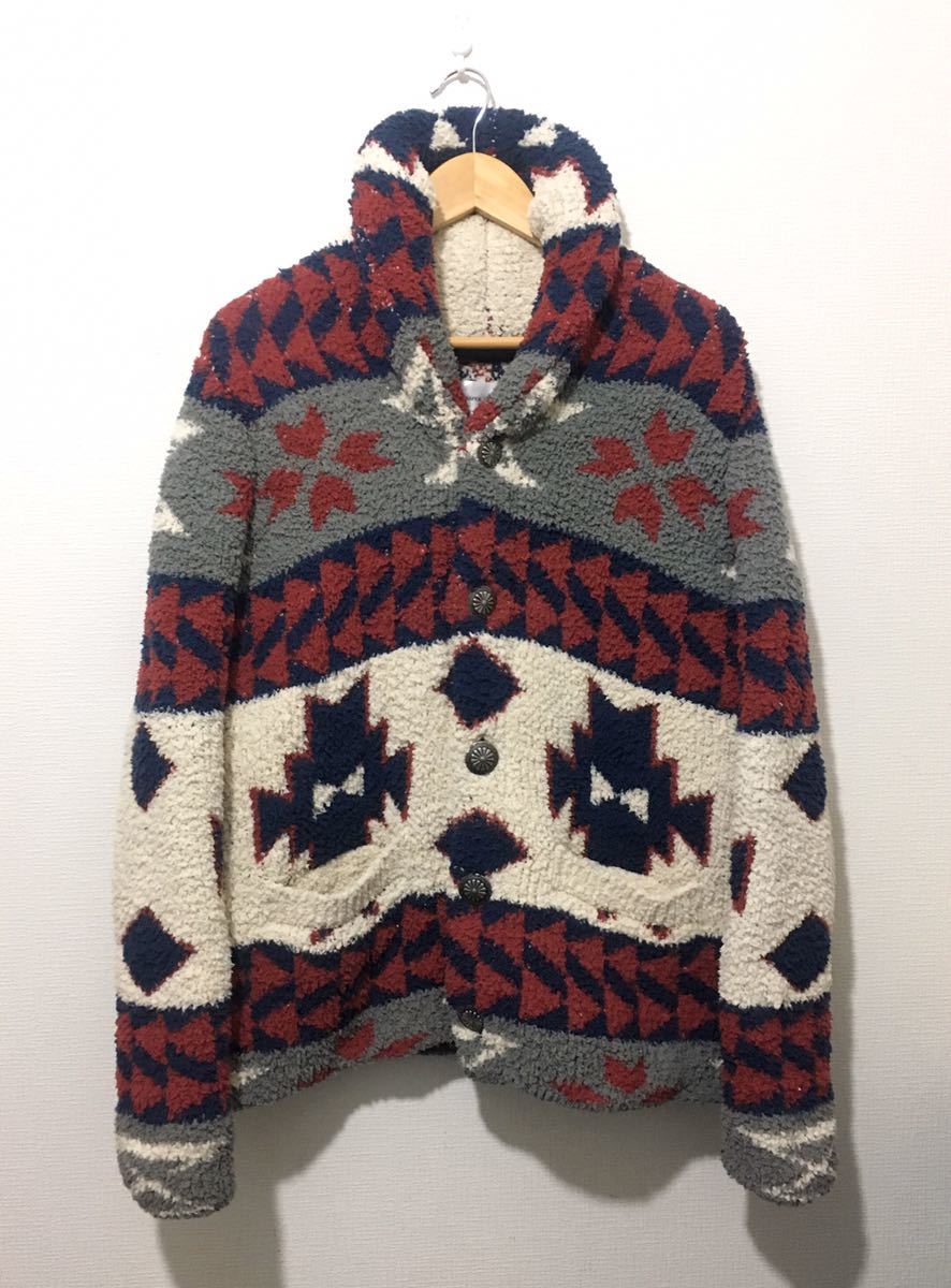 Casper John キャスパージョン ネイティブ柄 シャギーフリース パイルジャケット ショールカラー コンチョボタン