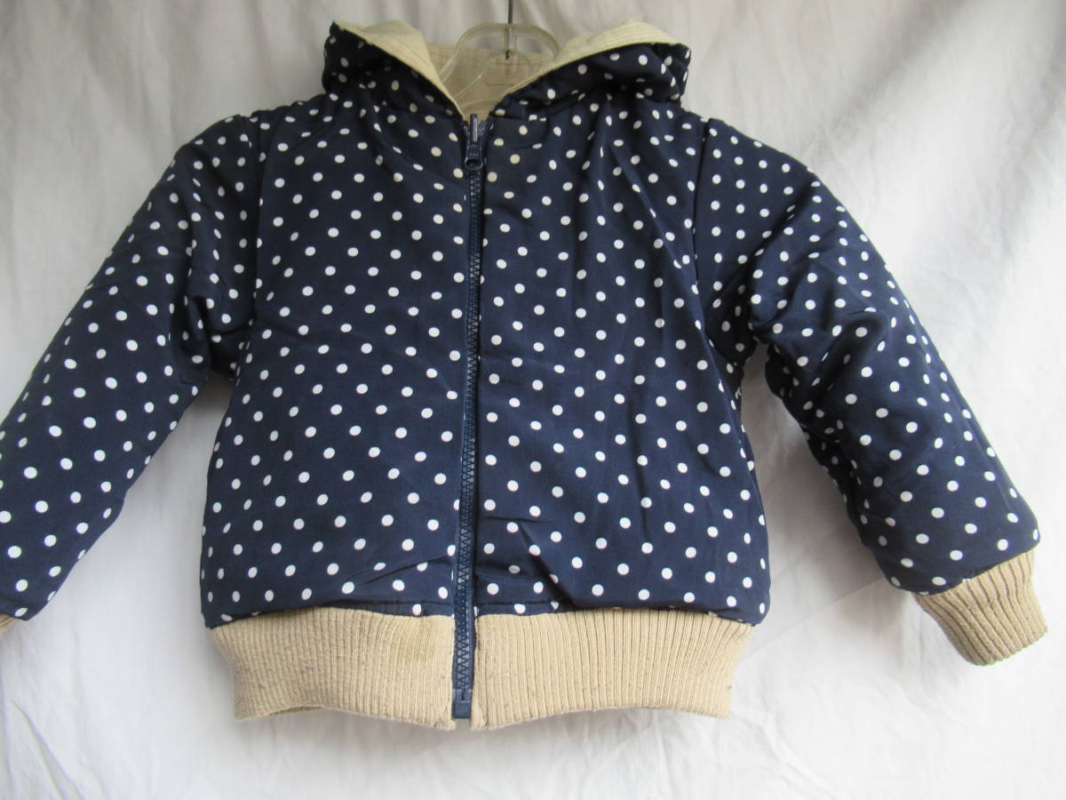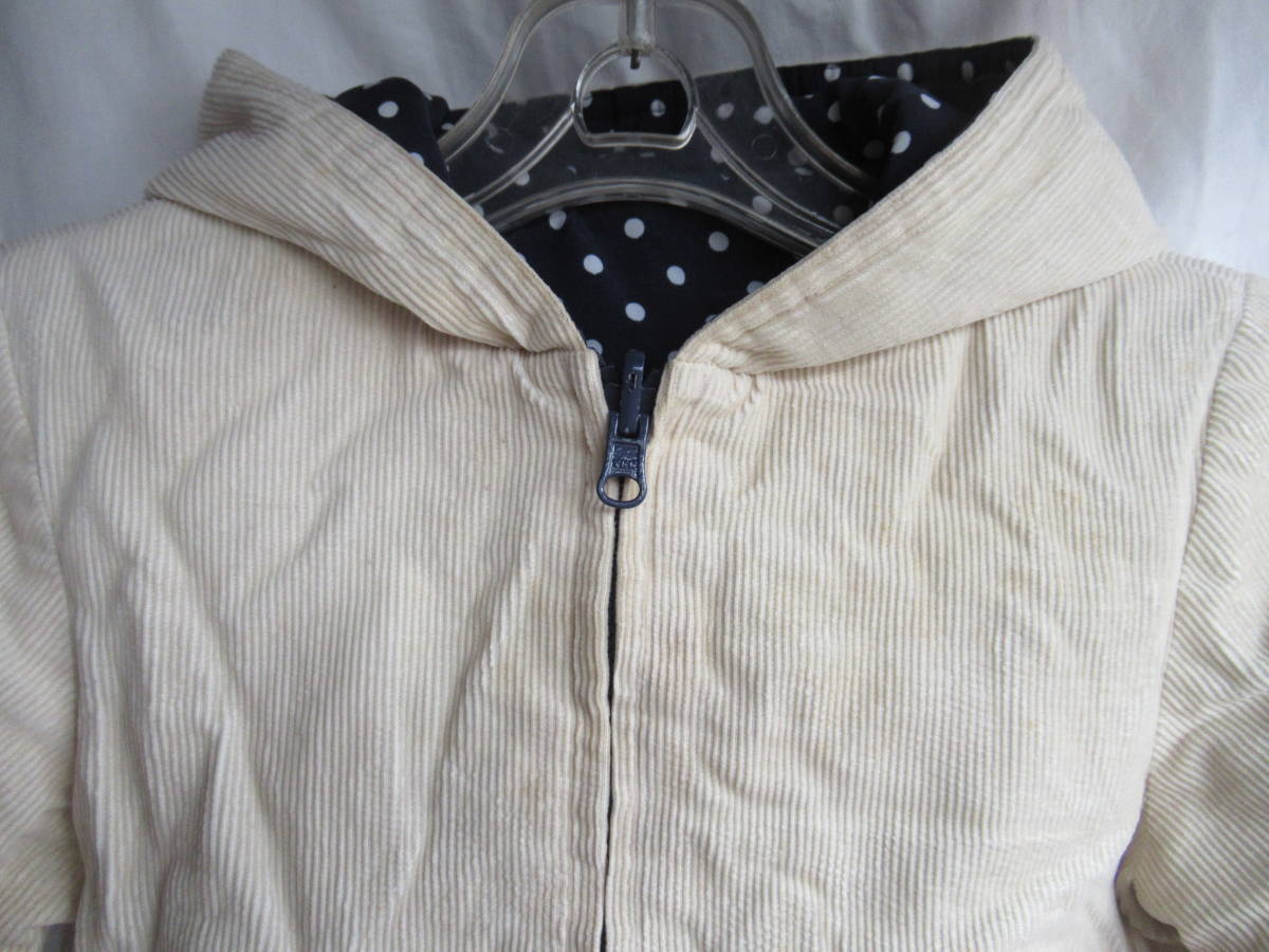 フード付きリバーシブルジャンバー 100 SHIPS シップス 綿100% ベージュ&紺地×白のドット