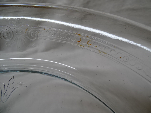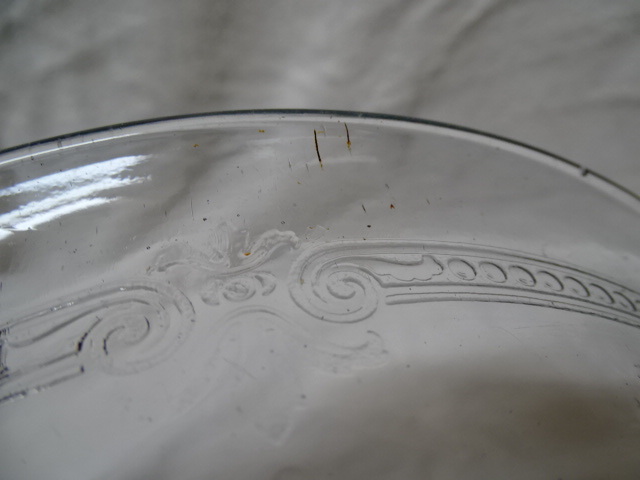 センター付近に深めの傷、全体に小傷と気泡が見られます。