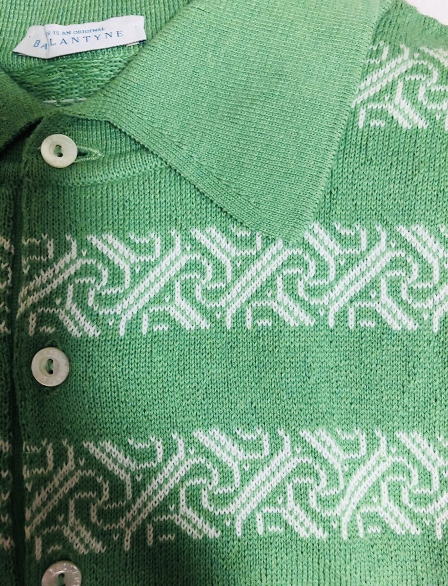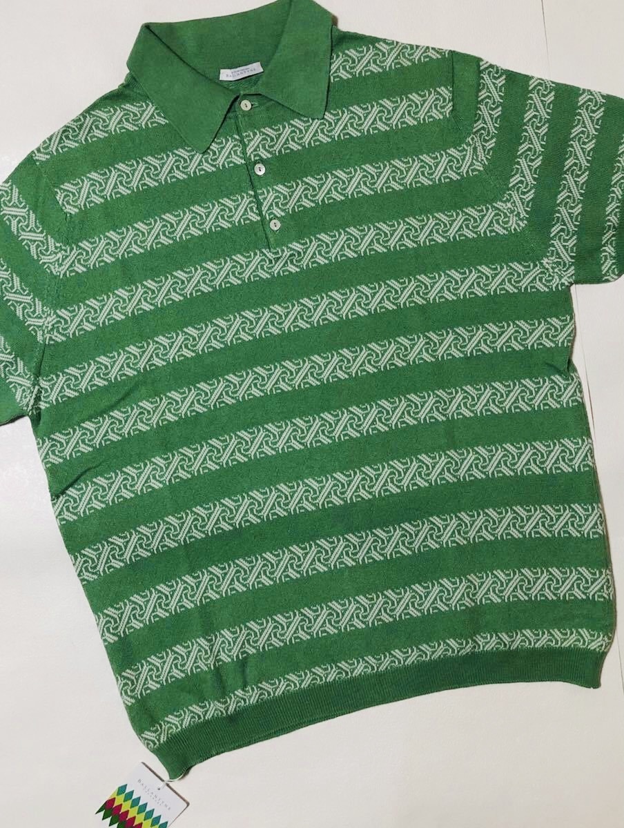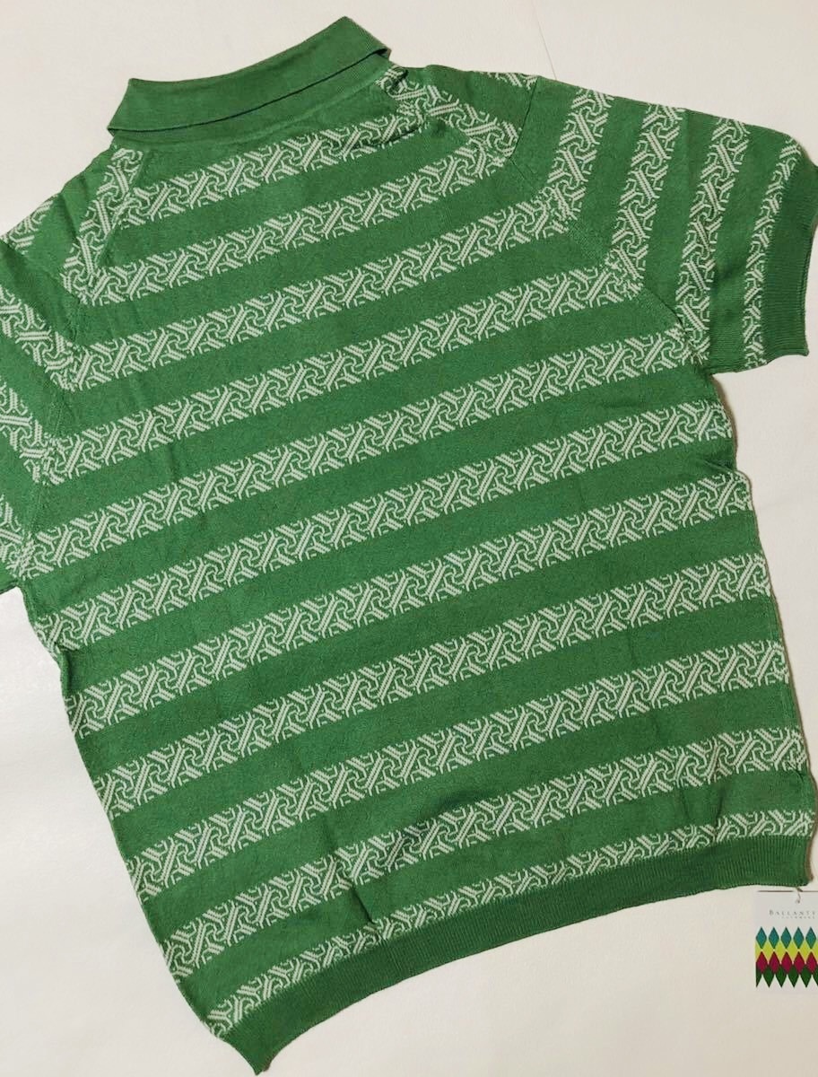 【新品タグ付き、正規品】 BALLANTYNE バランタイン サマー ニット ポロシャツ ポロセーター サイズ46 黄緑色 スコットランド製