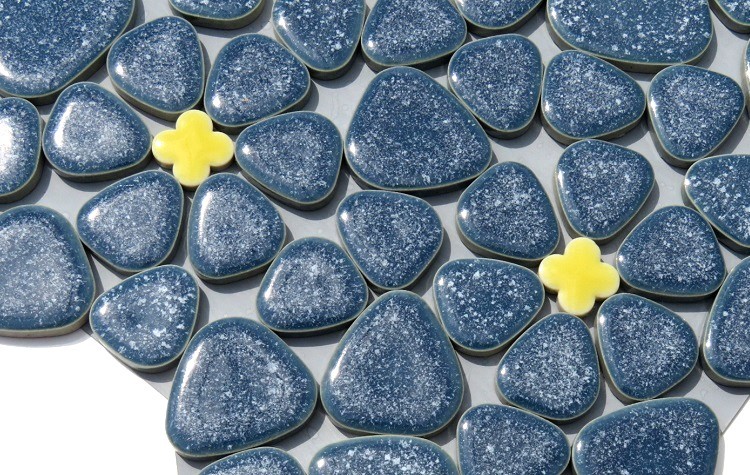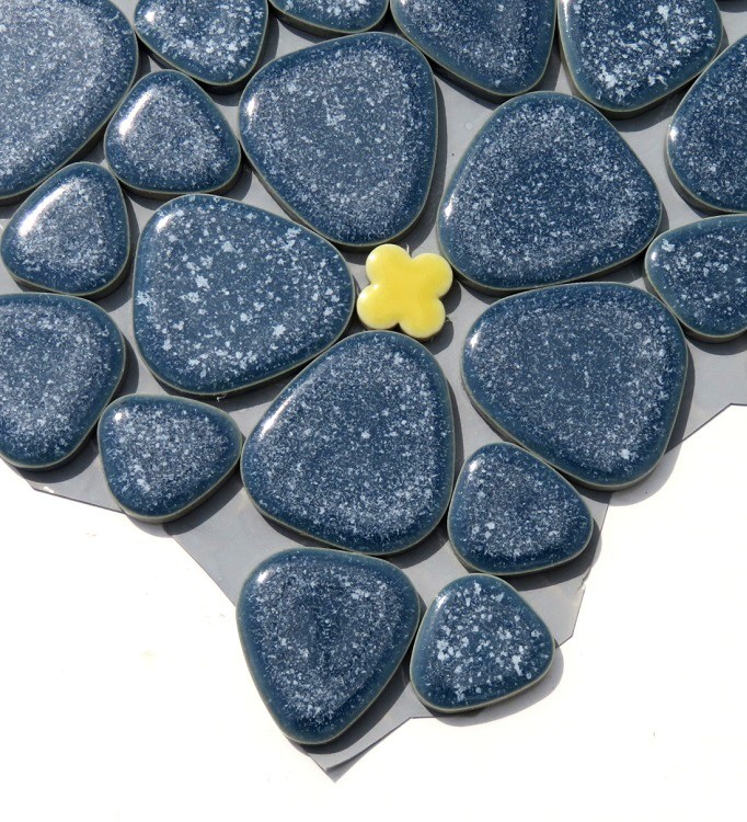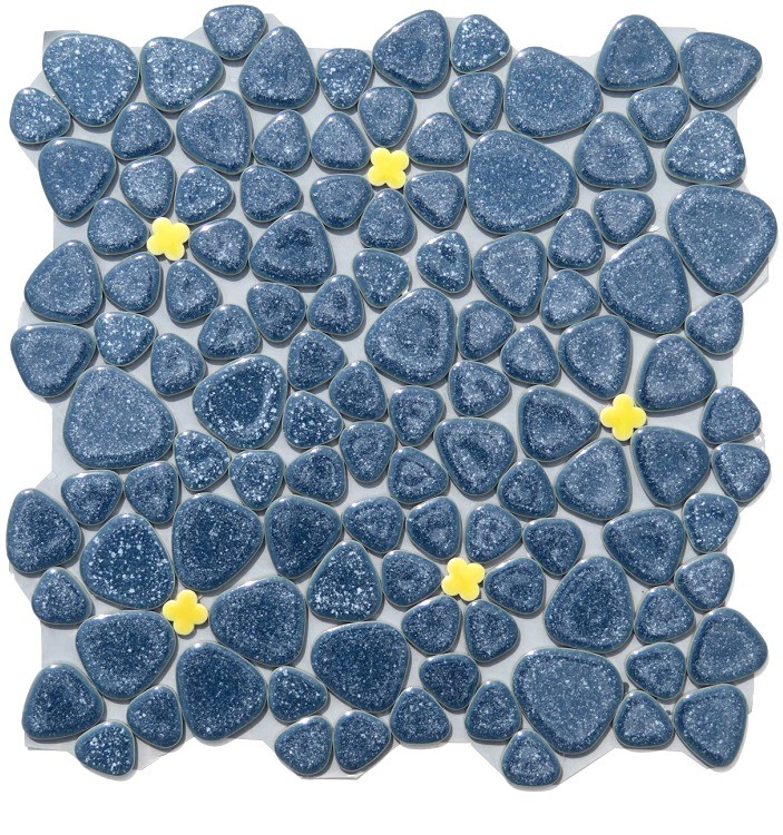 | ●○【花柄】玉石タイル GA-8 紺/黄 [10シート 一括販売]○● | |