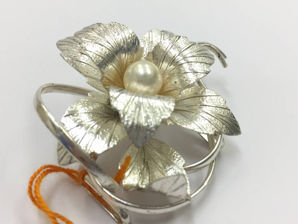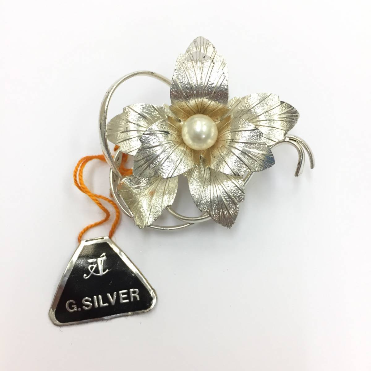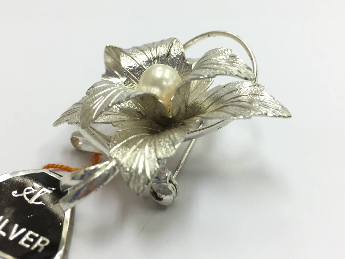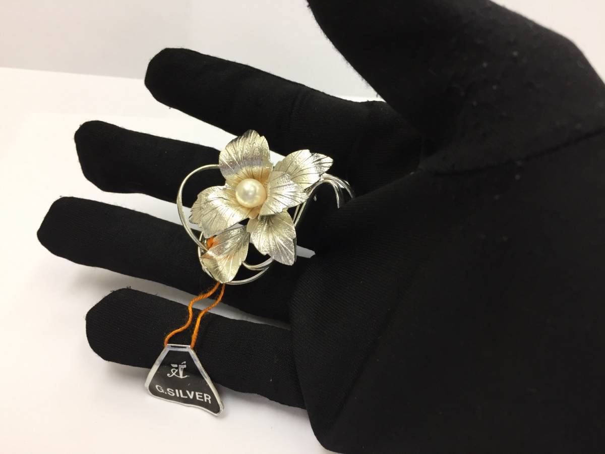 【ブローチ】約4.5×5cm 帯留めにもなる GSILVER ジーシルバー 洋銀 パール 上品 アクセサリー 和装小物 銀色
