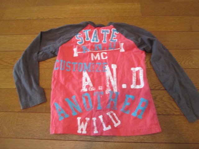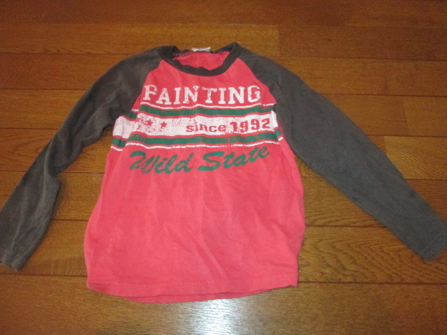 120 長袖Tシャツ 赤地袖黒 英語柄