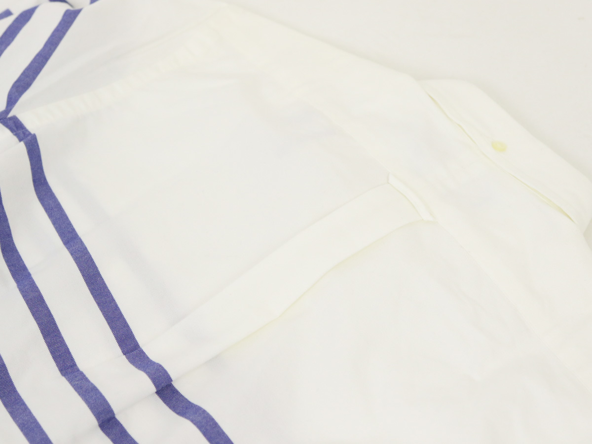 | アクセス頂きありがとうございます。 こちらはアメリカ買付新品アウトレット ラルフローレンRalph Laurenの長袖ボタンダウンシャツ。 程よい余裕のあるシルエットの、CLASSIC FIT。 コットンのボーダー柄オックスフォード、 左胸にはポケット付き、ボタンダウンカラー。 ラルフローレン定番のボタンダウンの長袖シャツです。 生産国/ MADE IN CHINA 素材/ 100% COTTON (US) S 着丈 (cm)77.5 身幅 (cm)54.5 肩幅 (cm)45.5 袖丈 (cm)63 *着丈:背面襟元中央~裾まで直線、身幅: 脇下~脇下まで直線、 肩幅: 肩先~肩先まで直線、袖丈:肩先~袖口まで直線、 裄丈:背面襟元中央~肩を通って袖口まで *サイズは慎重に計測しておりますが、計測方法や商品の材質、 個体差で誤差が出ることがございますのでご了承ください。 アウトレット理由 左肩に汚れがあります。 0103702 その他、多数出品しております。 こちらもご覧下さい |