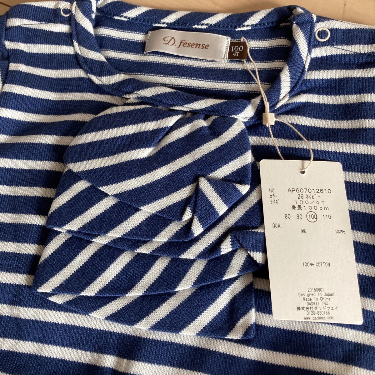 ディーフェセンスのボーダーワンピース100cm、新品タグ付きです。8,140円のお品です。