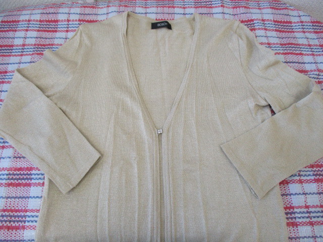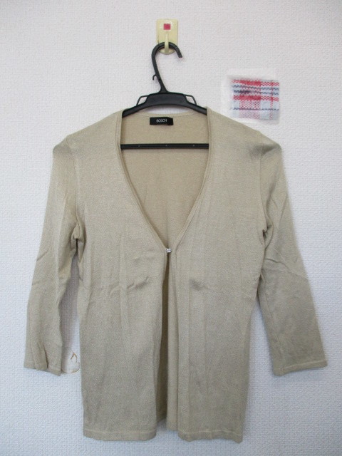 ★BOSCH 7分袖 カーディガン Vネック 1つホック ラメ入りゴールド(38)