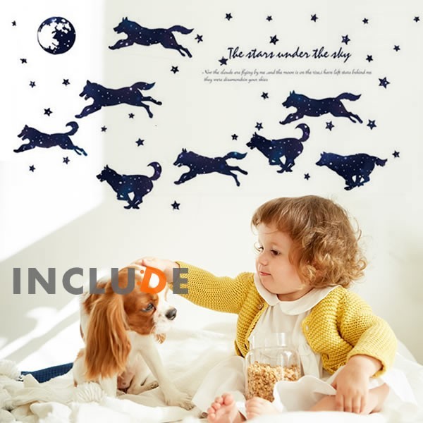ウォールステッカー 月夜 星 夜空 ウルフ 狼 オオカミ 夜空と星と狼 コヨーテ オオカミの群れ 綺麗 月氏 西斗