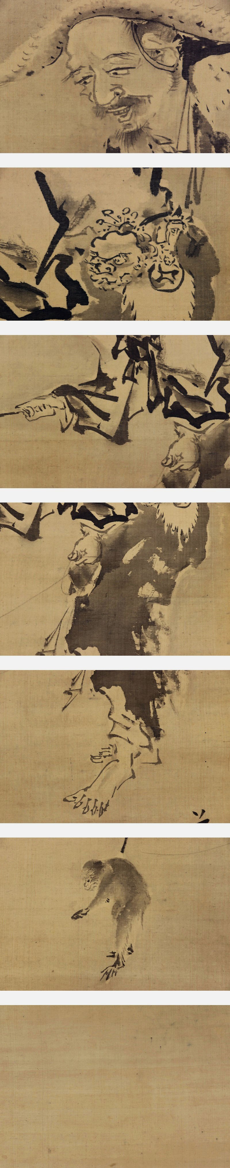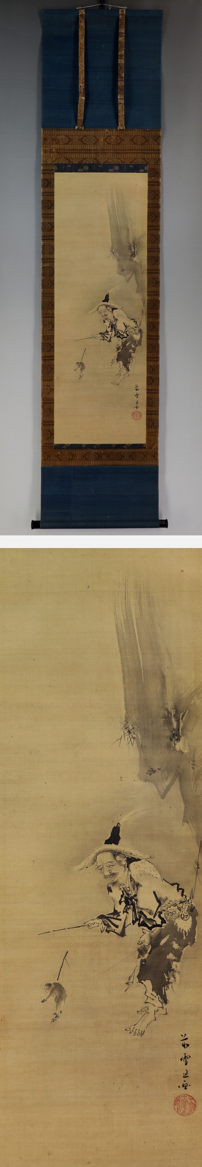| №2109054 名品【真作】長谷川雪旦【猿まわし図】◆絹本◆合箱◆掛軸 | |