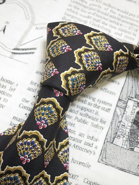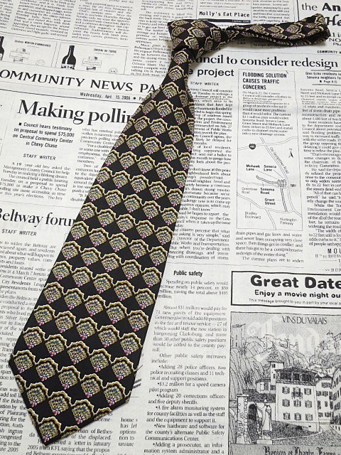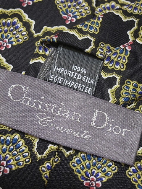 大人なデザインでオシャレ! クリスチャン ディオール Christian Dior 未使用品 微光沢 ネクタイ シルク パターン柄 黒ベース ブラック A-004379 | |