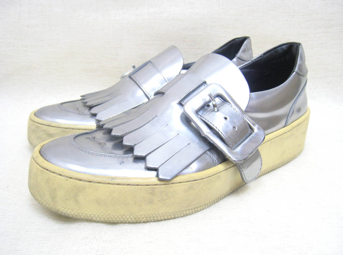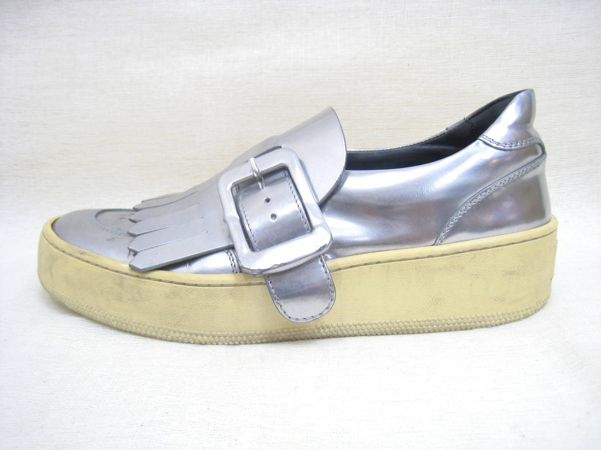 | ★Sergiorossi◆セルジオロッシ フリンジ スリッポン レザーシューズ イタリア製 革靴 レディース サイズ35 シルバー★ | ||||