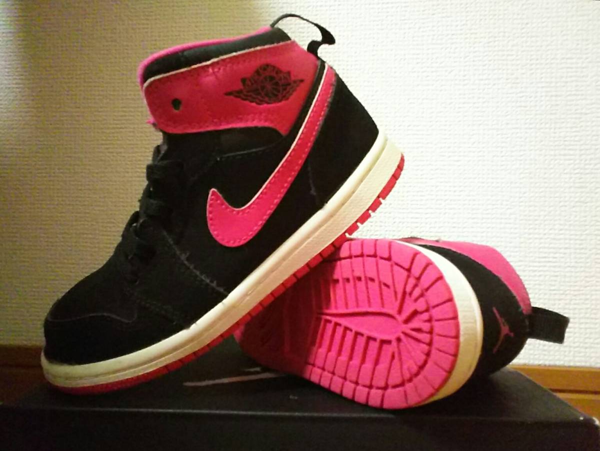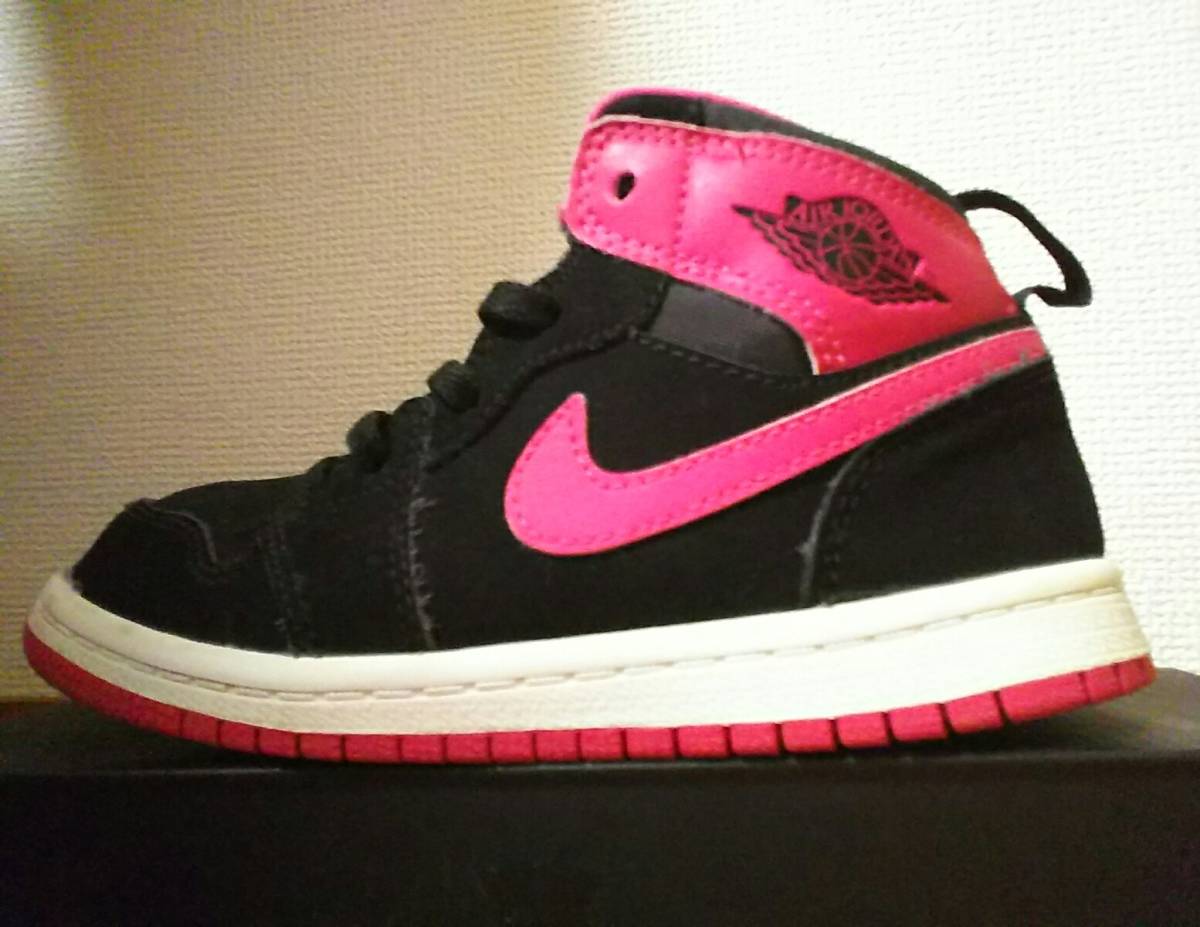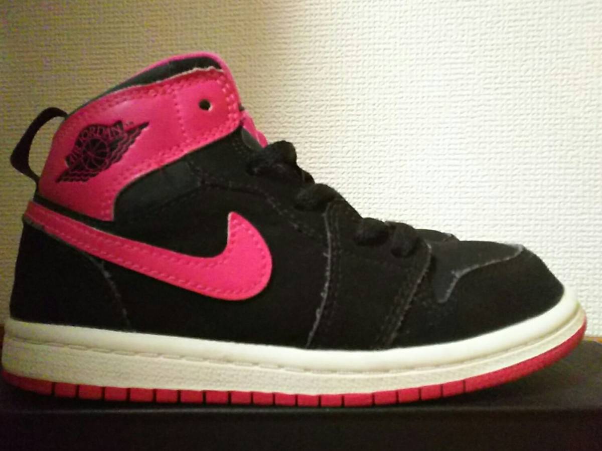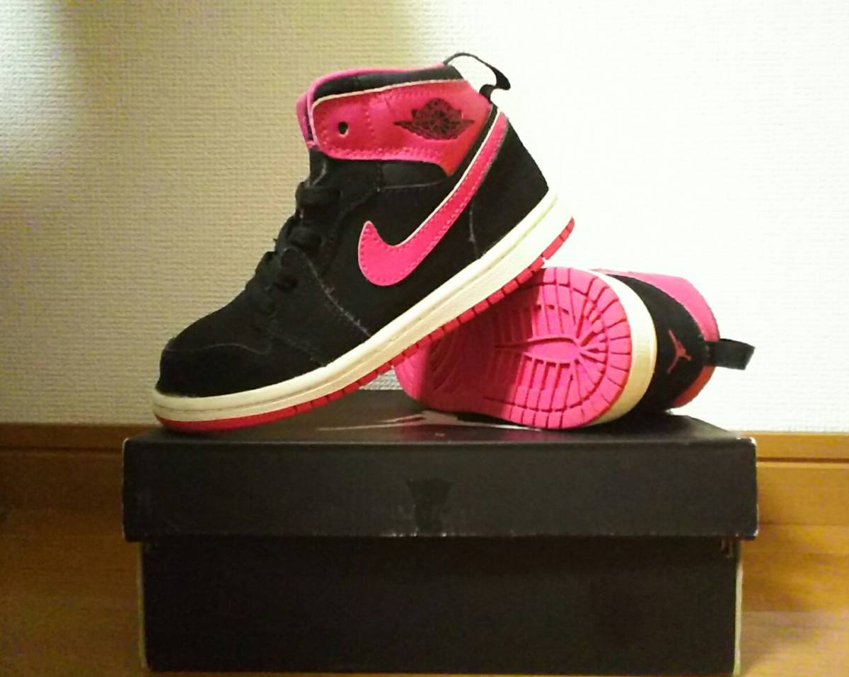 幻☆JORDAN 1 MID BT黒blackピンクPINKブラックNIKE AIR JORDAN 1 AJ1 ナイキ エア ジョーダン16センチ705324-008ジョーダン1のキッズモデル16cm海外購入品クリスマスX'mas☆