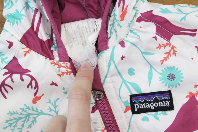 胸元にはパタゴニアのブランドロゴのタグ付きです。