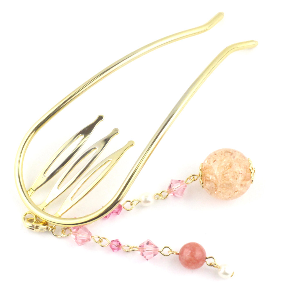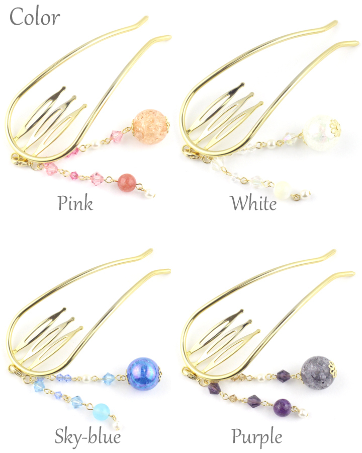 サイズ | コーム全体:長さ9×4cm 裏コーム長さ:約3cm チャーム長さ(長い方):7.3cm(フック含める) チャーム大きいビーズ直径:1.3cm |