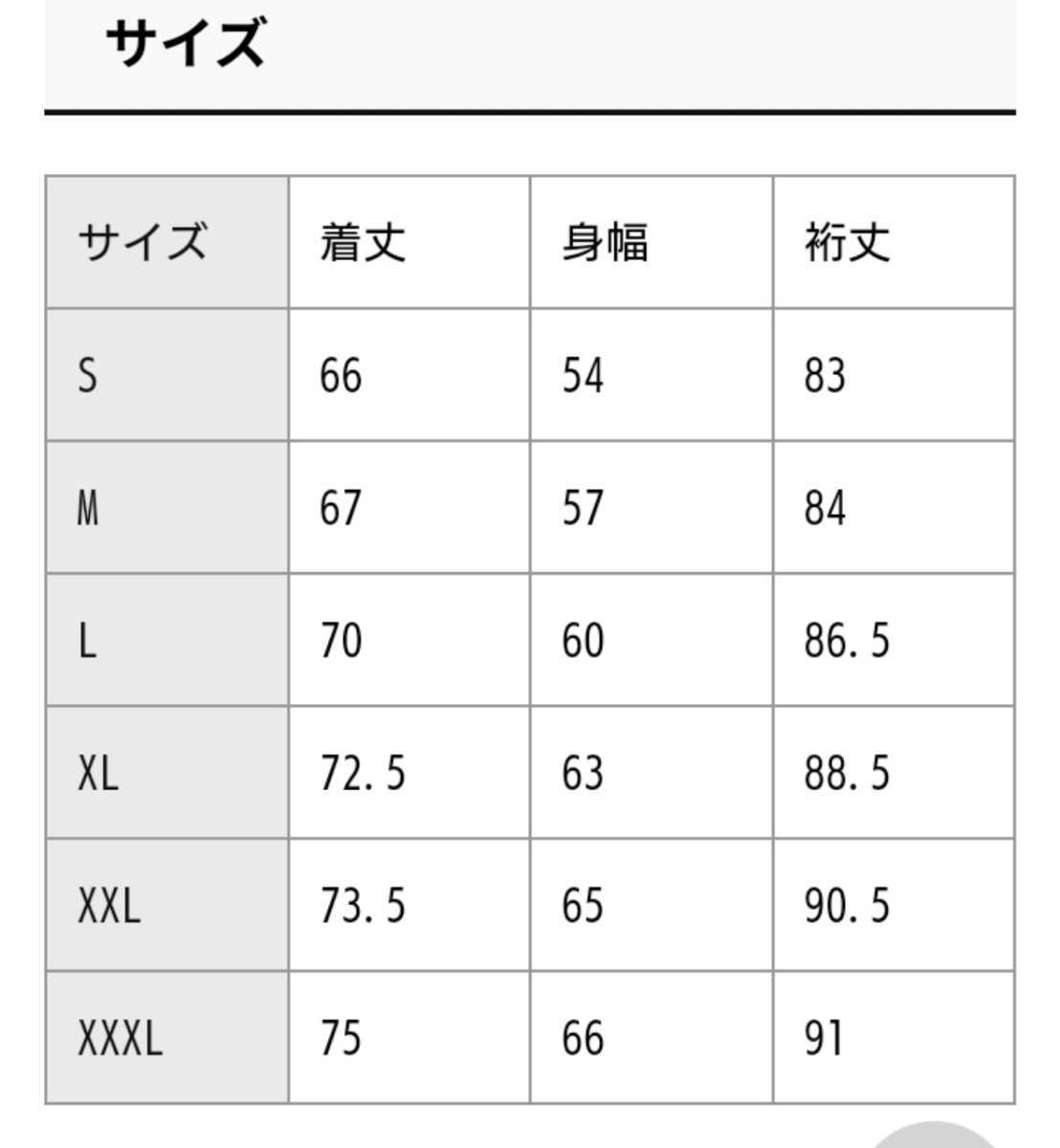 2XL : 着丈 75.5/身幅 64.5/裄丈 87.5